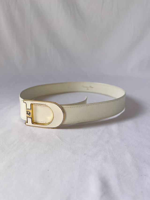 Dior 80's "D"Logo Leather Belt-Deadstock- -White-