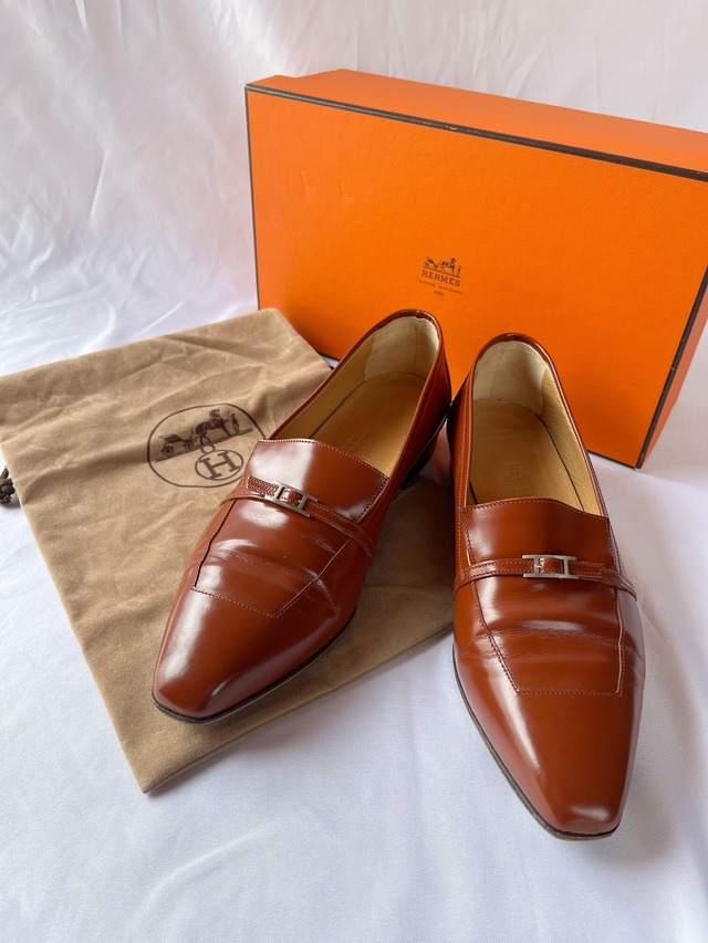 やや赤みがかったブラウンレザーが上品な印象のHermesのローファー。 ツヤのあるレザーが美しく輝く一品。細いベルトモチーフには、シルバーの“H”ロゴが施されており、Hermesらしいエッセンス☆スッキリとしたシルエットが洗練された雰囲気で◎ *わずかに小キズやシワがございますが(写真参照)、その他目立つダメージなくキレイな状態です。 *箱、保存袋つき Size;表記36.5 ヒール:約2cm 素材:Leather 色:Brown こちらの商品はOnline先行発売ですが、翌日から店頭商品としても同時販売しております。 ご注文頂いた時点で商品が欠品している可能性もございます。 商品が欠品していた場合、 自動で送信されるご注文メールの後に、 『商品欠品メール』をお送り致します。 その際は、いただいたご注文はキャンセルに なりますのでご了承のほどお願い致します。 *ご注文確定後、お客様の都合によるキャンセルはできません。ご理解ください。 *商品の性質上、返品、交換には応じられませんのでご了承ください。 *新品商品ではございません。 *寸法には、多少の誤差がある場合がございます。 特に伸縮性のある素材やデザインのものについては目安としてお考えください。 各商品のサイズや状態をもっと詳しくお知りになりたい場合は、お気軽にお問い合わせください。 *当店で扱う古着、古物につきまして、経年に伴う変色やキズ等は、返品の対象及び不良品となりません。一見して目立つものは説明文や写真で紹介していますが、当店で目立たないと判断したものについては説明を省いております。 *古着特有の雰囲気や魅力ををご理解いただいた上でご注文願います。 *パソコン環境・モニターなどの設定・仕様等でイメージ写真と実際の商品との色合いが若干異なる場合がございます。 こちらの商品に関するお問い合わせは CARBOOTS 03-3464-6868、又はInstagramのDM、コンタクトまでお願い致します。