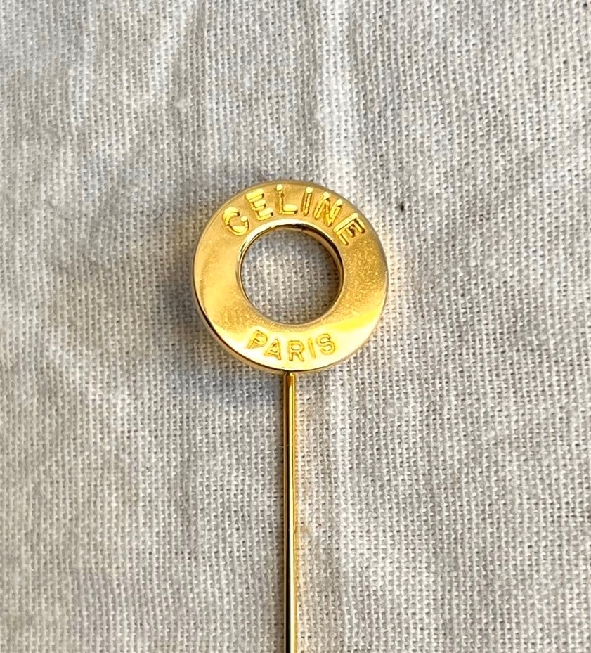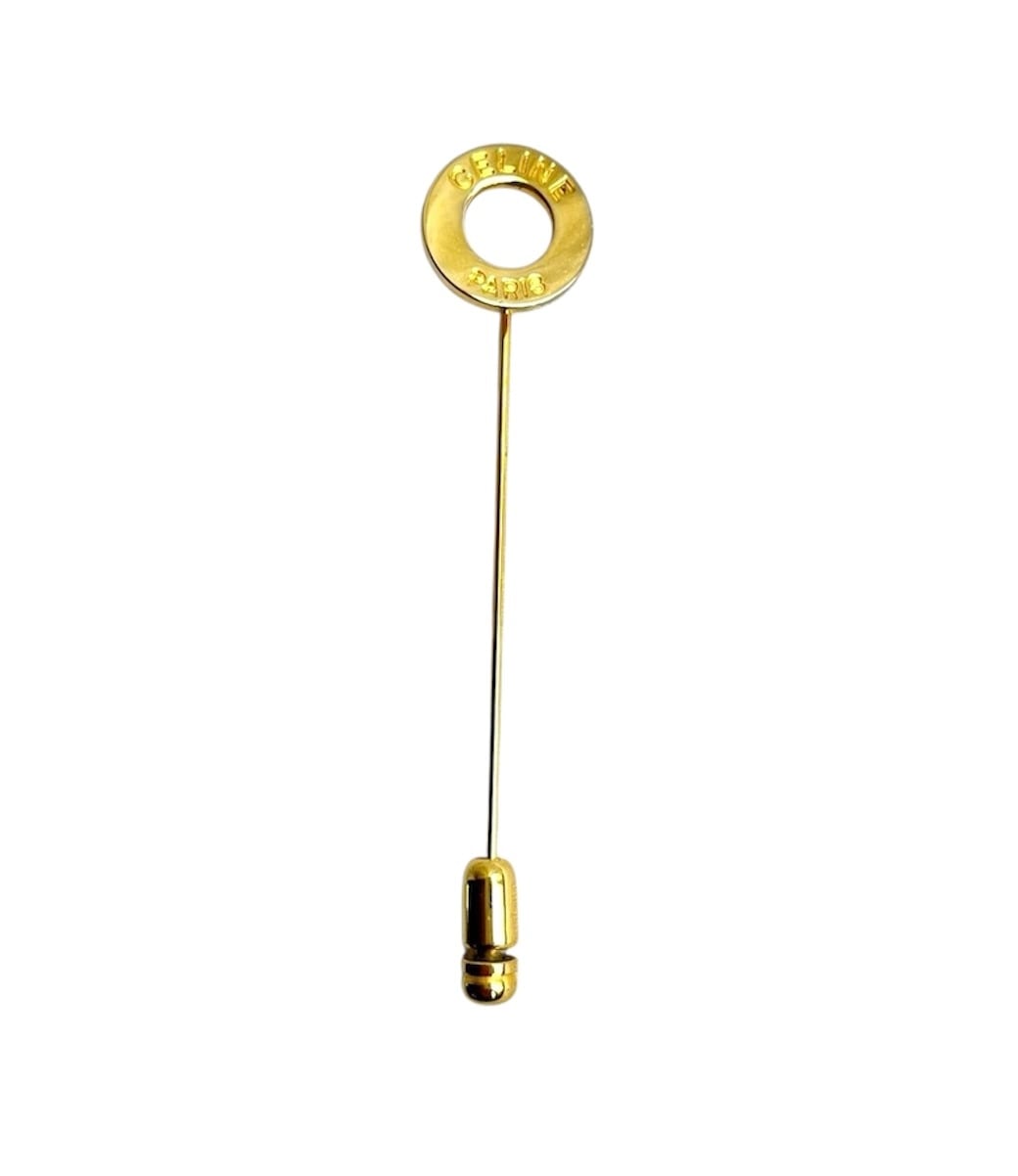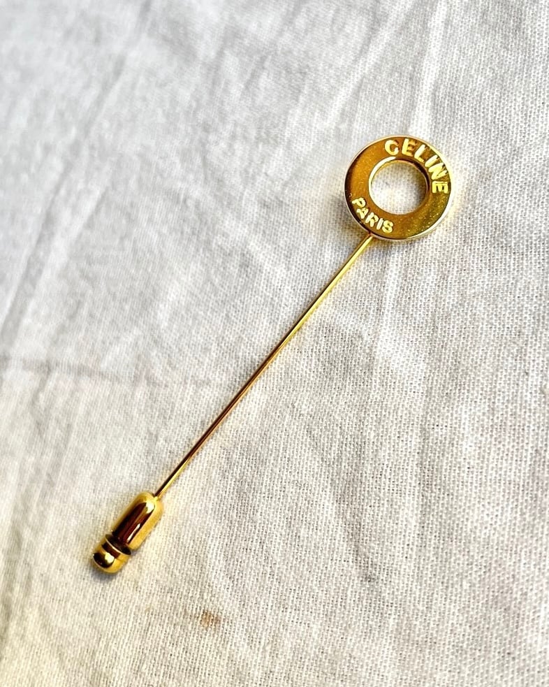 ゴールドのサークルにCELINEロゴが際立つラペルピン。シンプルながらも存在感と高級感を兼ね備えた一点。コーディネートをさりげなくクラシカルに見せてくれるアクセサリー。ジャケットはもちろん、帽子やバッグ、ニットなど様々なコーディネートを華やかにしてくれます。