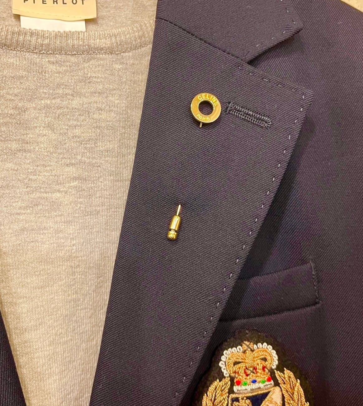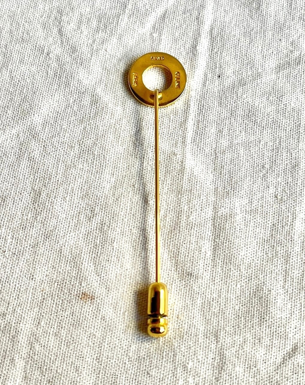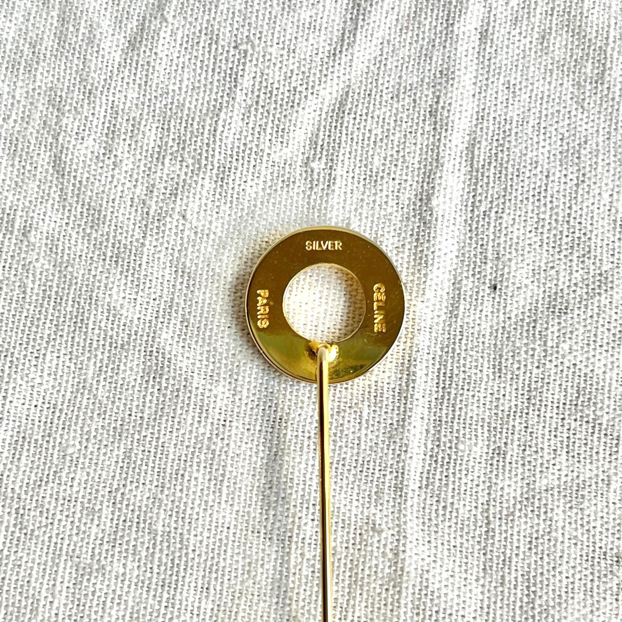 ゴールドのサークルにCELINEロゴが際立つラペルピン。シンプルながらも存在感と高級感を兼ね備えた一点。コーディネートをさりげなくクラシカルに見せてくれるアクセサリー。ジャケットはもちろん、帽子やバッグ、ニットなど様々なコーディネートを華やかにしてくれます。