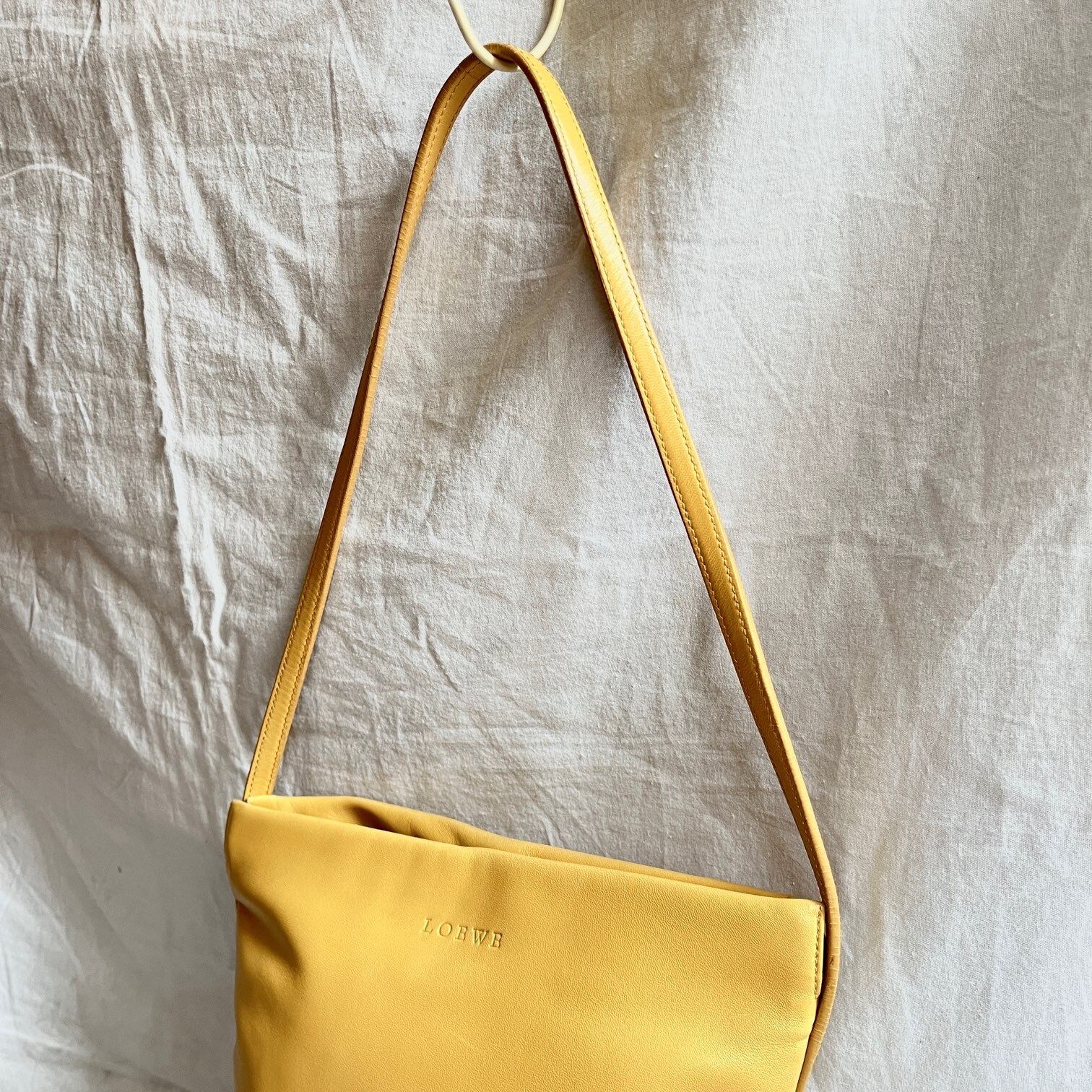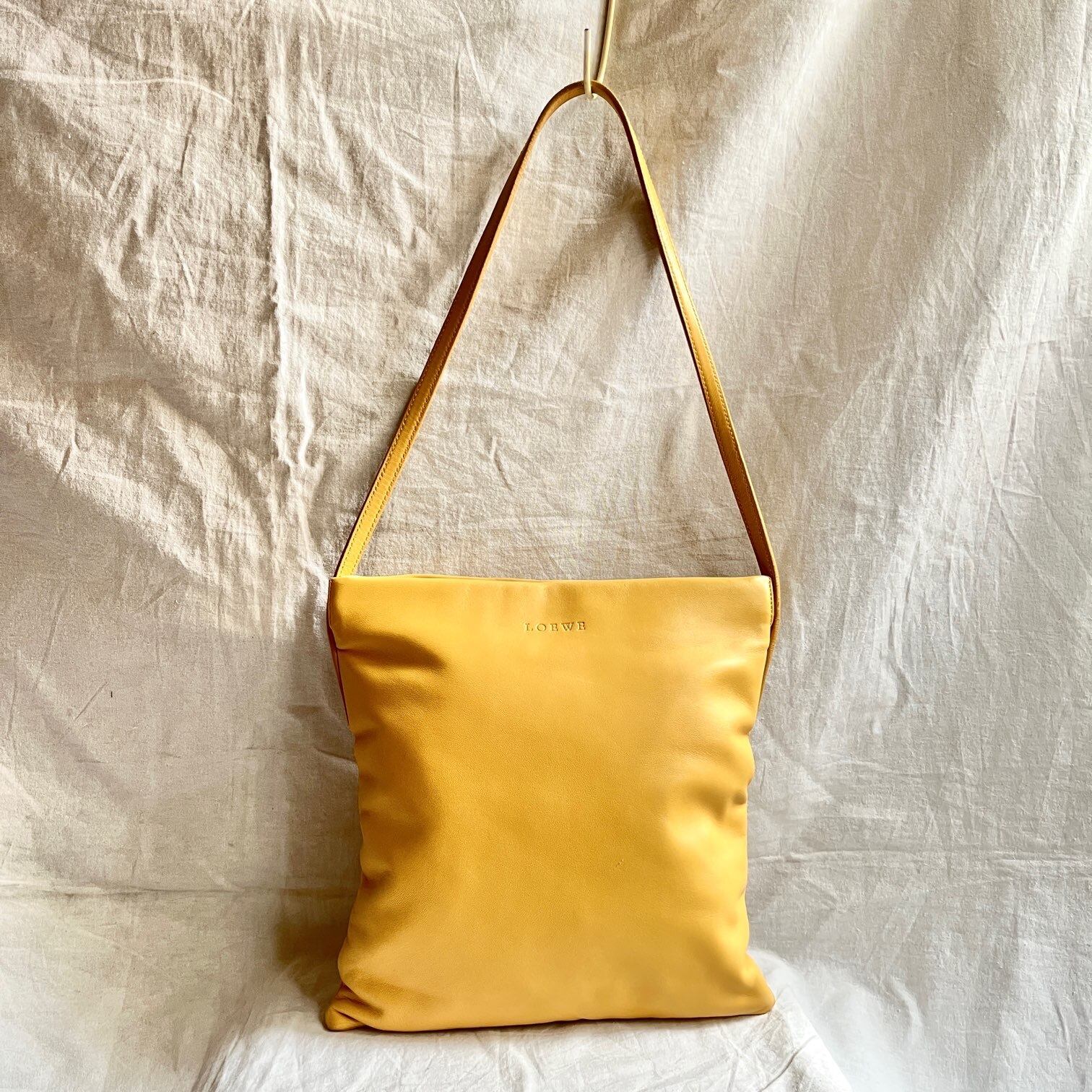 上質でなめらかなイエローレザーが目を惹くLoeweスクエアショルダーバッグ。