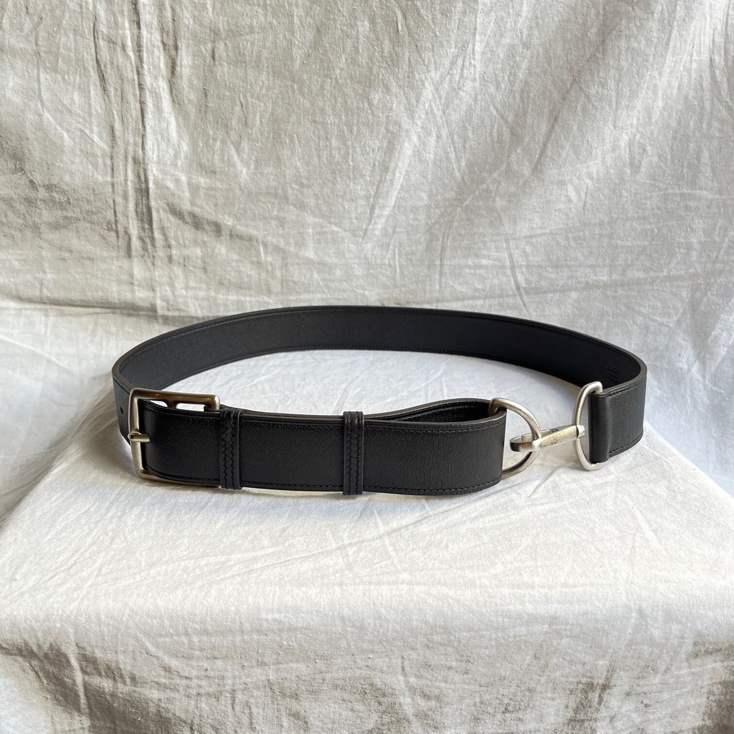 バックルとフックの組み合わせが斬新なHermesブラックレザーベルト, Men’s, レア!!