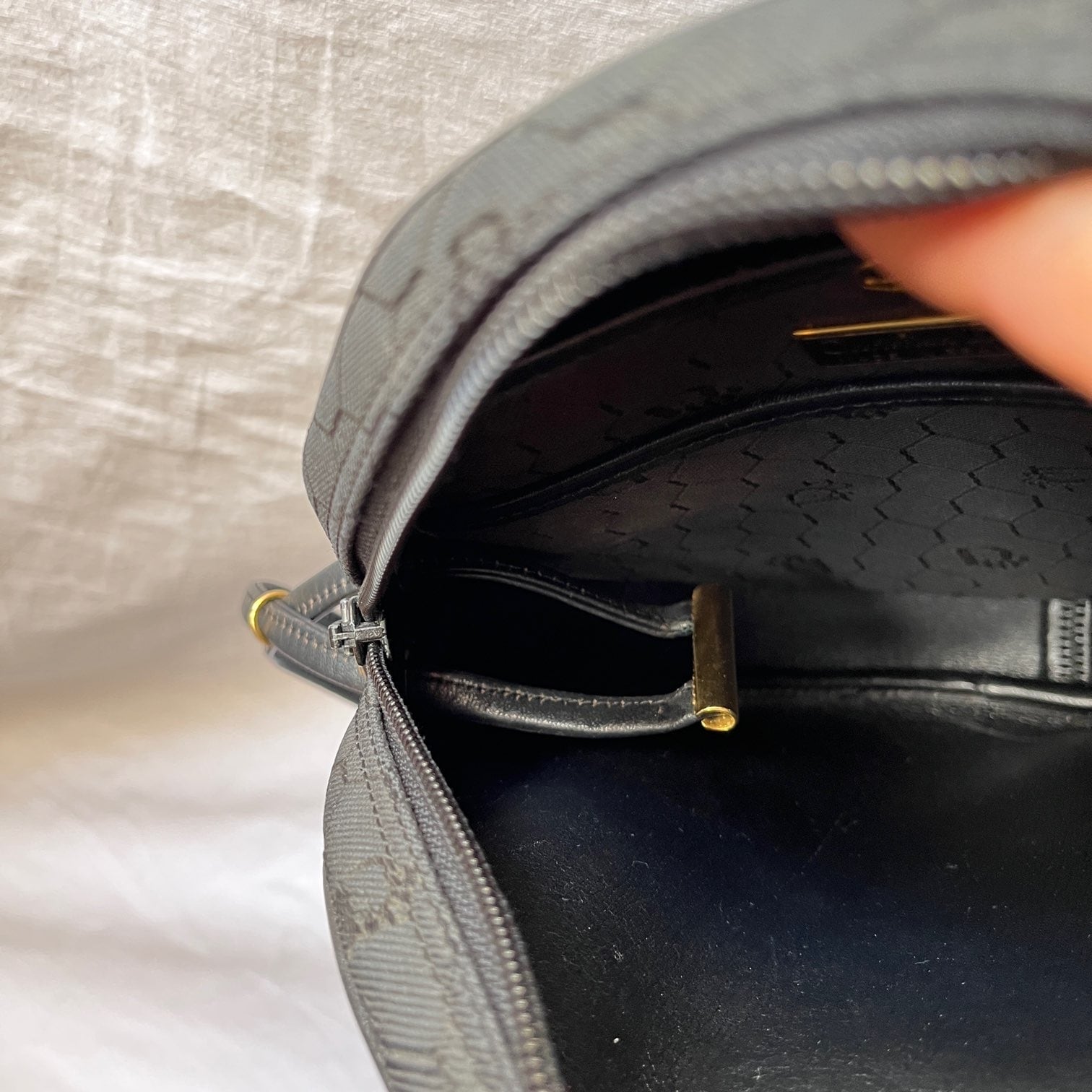 Dior 80’s ‘Honey Comb Pattern’ Black Canvas Round Shape Shoulder Bag