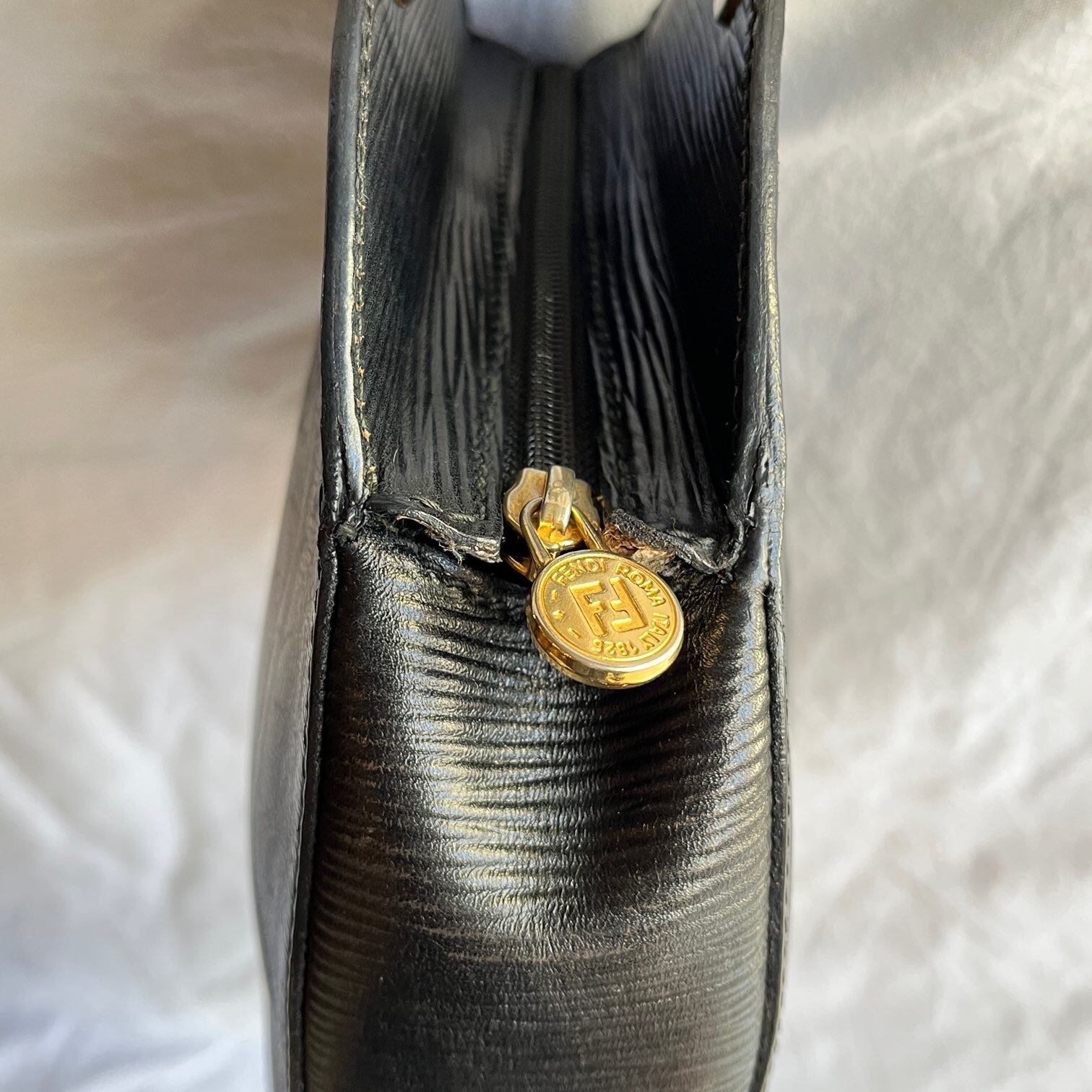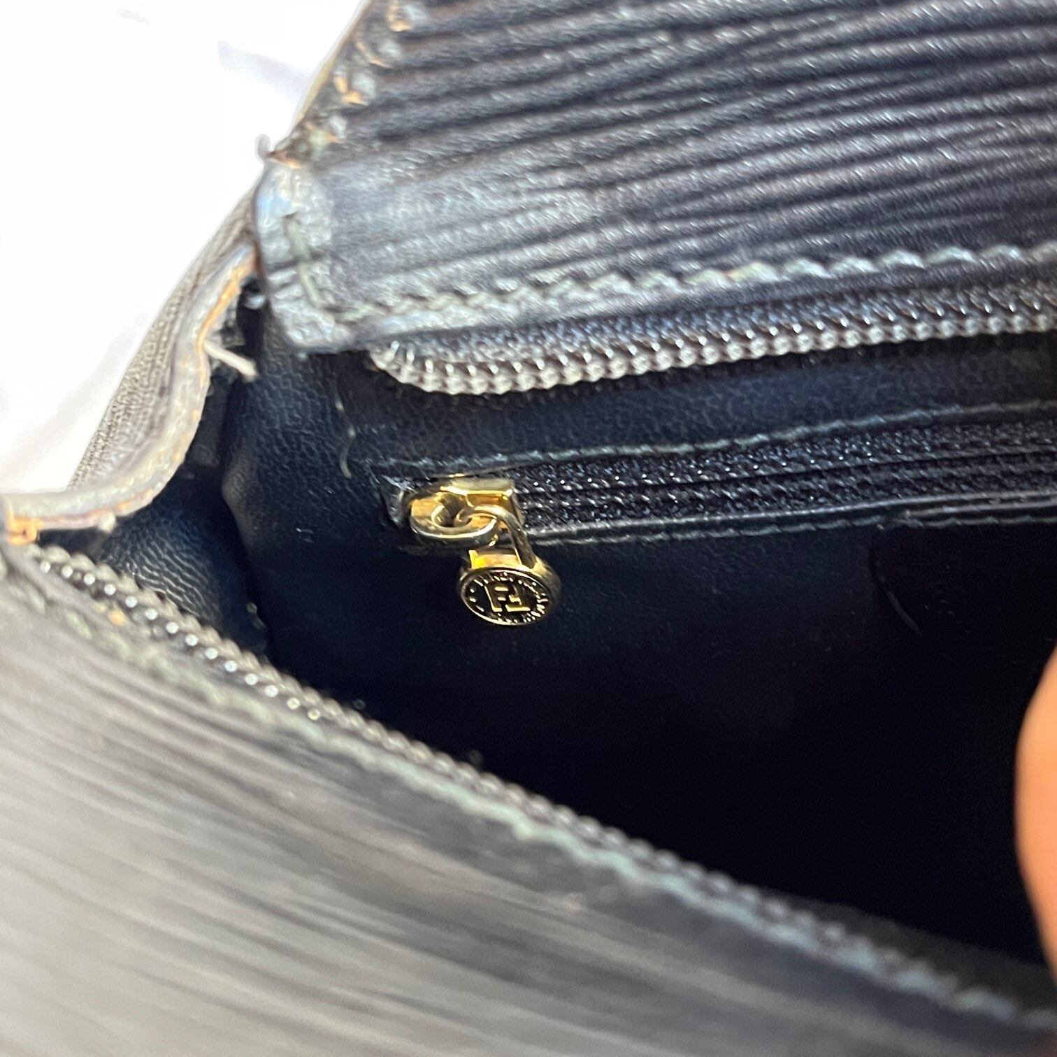 FENDI “Black Leather” Greece Logo One Hand Bag