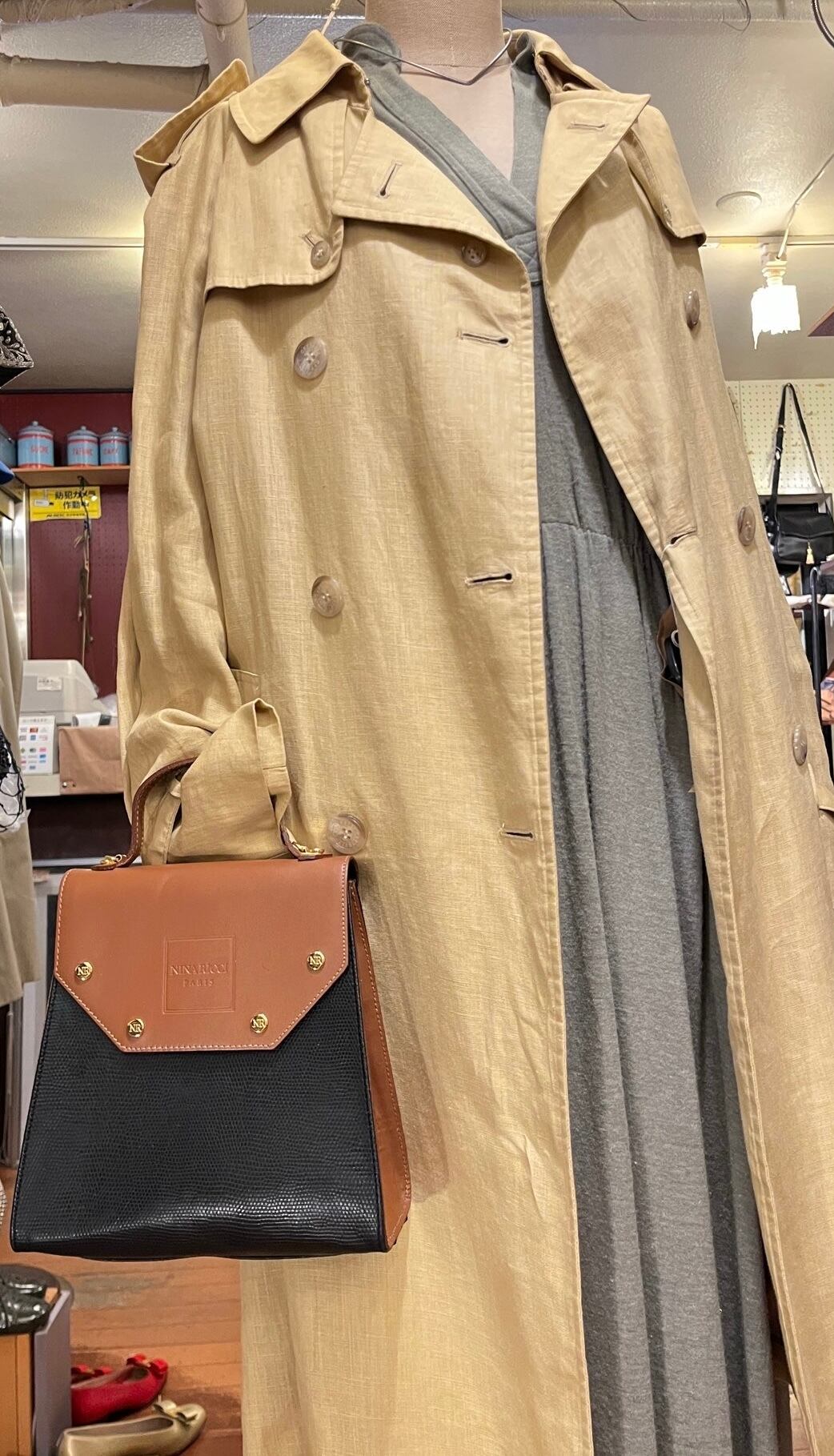 ライトブラウンとブラックのバイカラー、異素材レザーの配色に、スタッズのようなゴールドのNR金具がポップです。