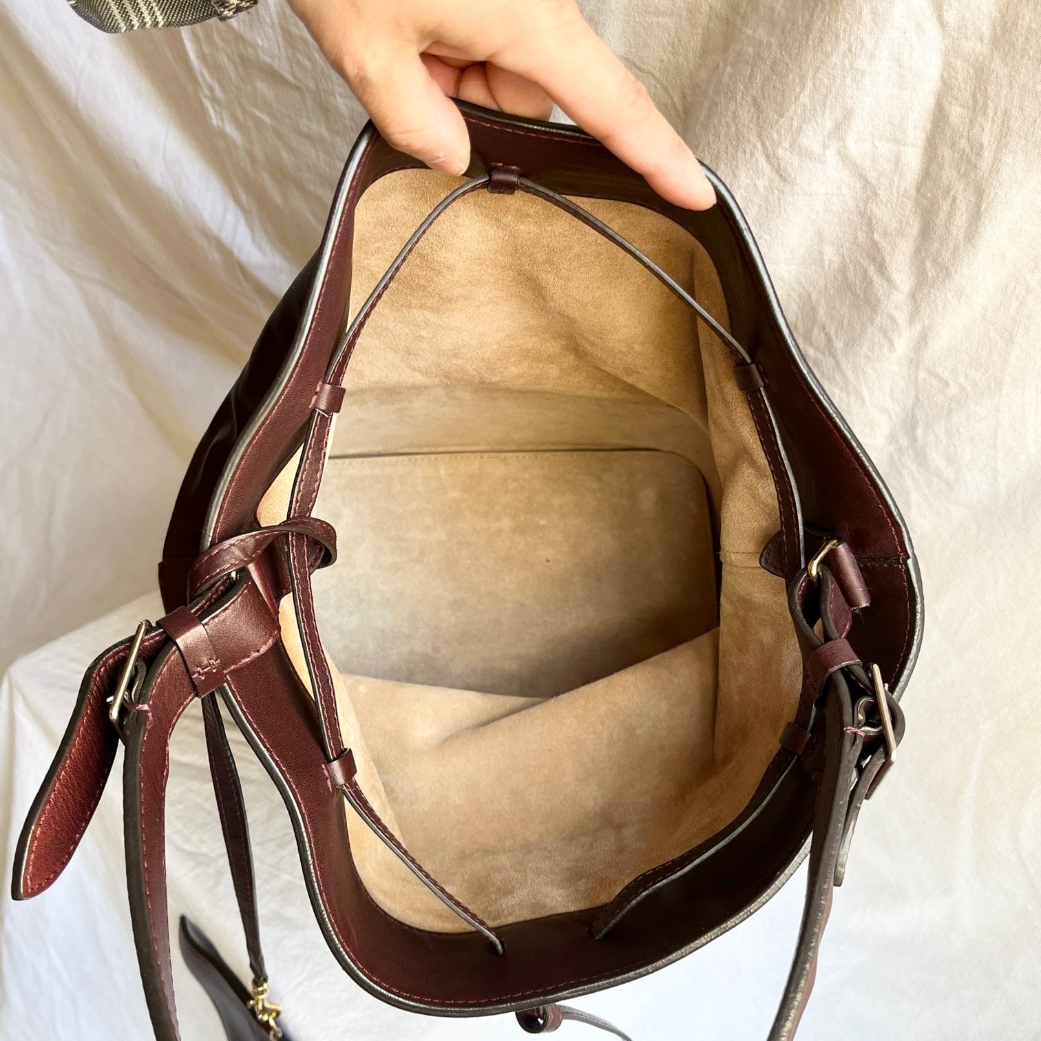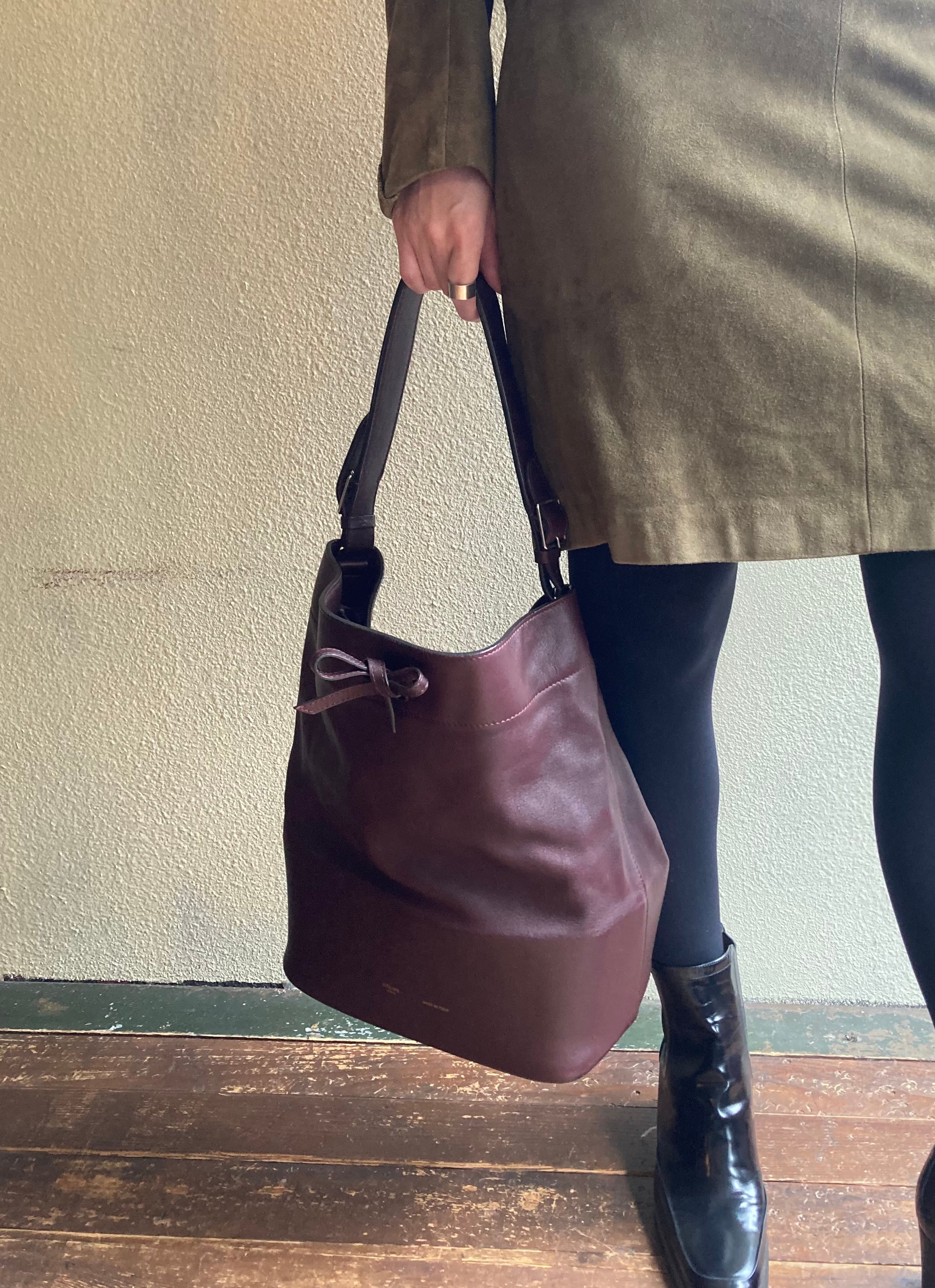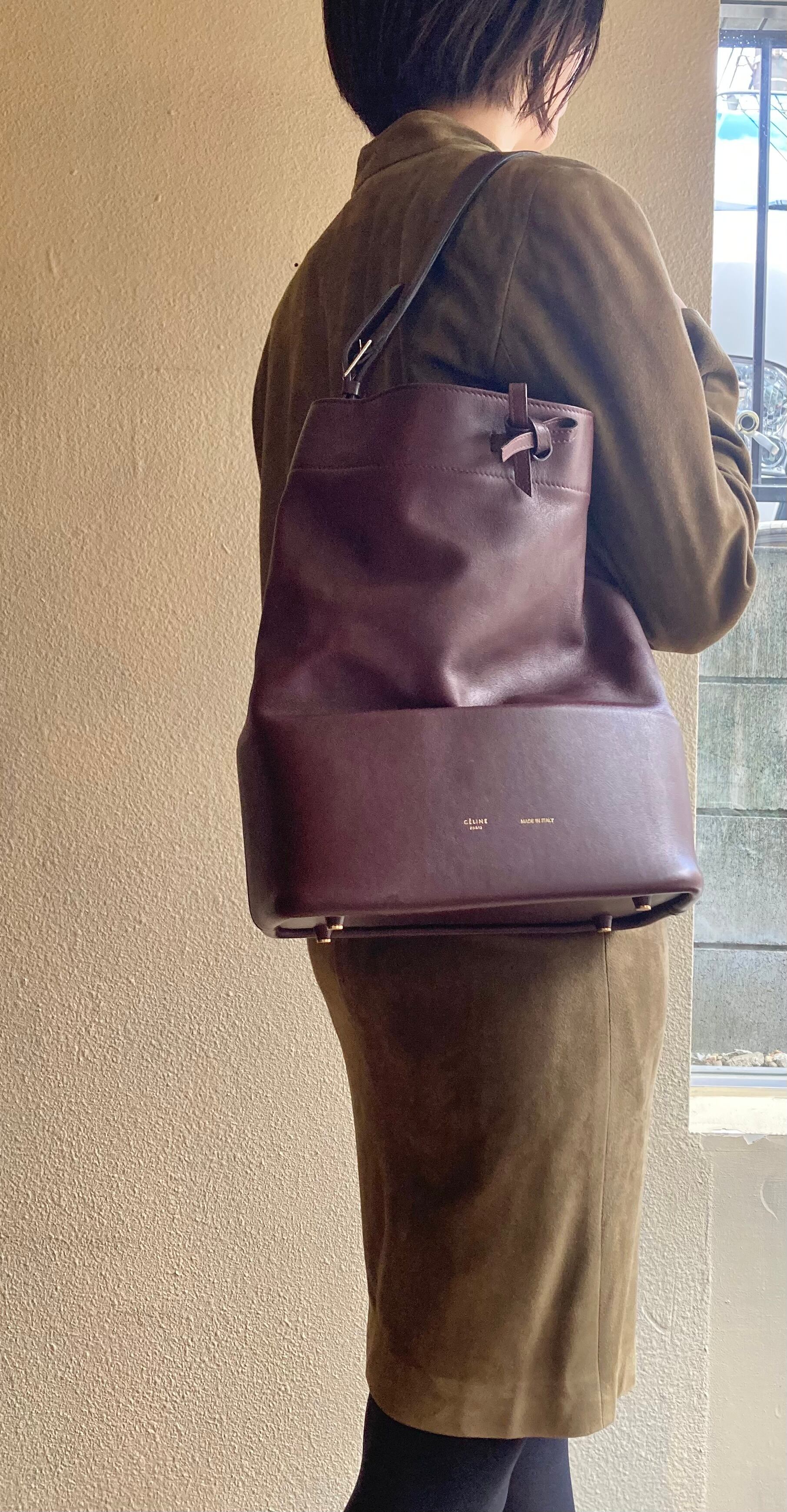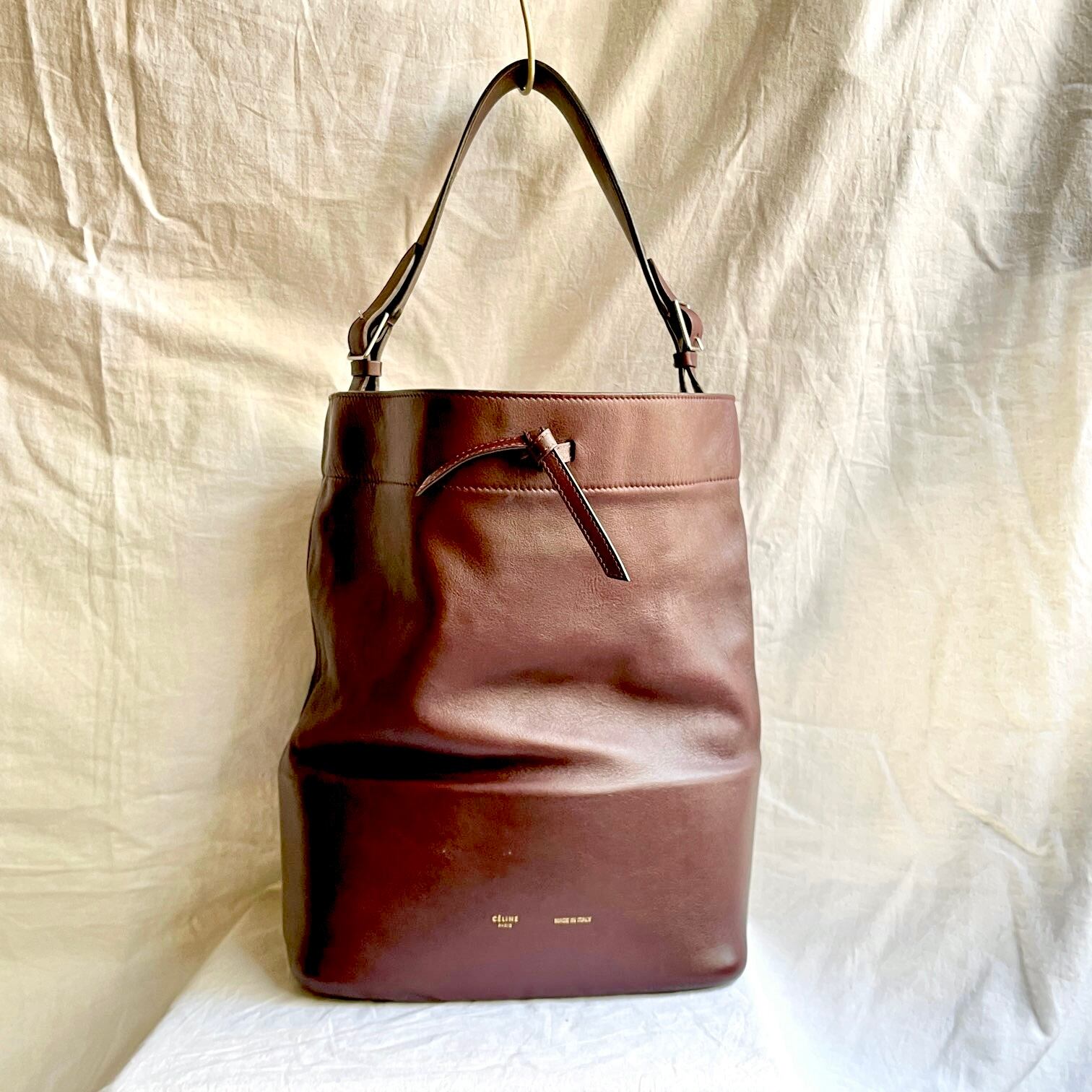人気のバケツ型に最高級のしなやかなレザー、裏地の柔らかいベージュ色のスエードなど、細部まで丁寧な作りの良さがさすがフィービーCeline。大容量の自立する広いマチにジップポーチが付属していたりと実用性もあり、長く愛用できる一品です。
