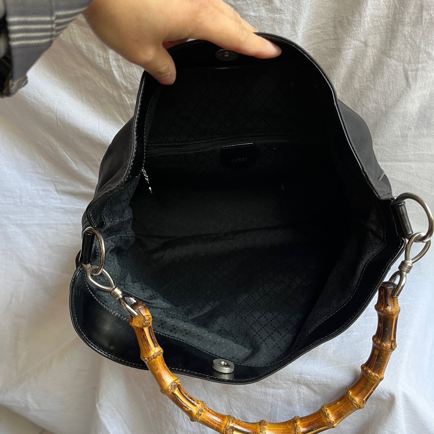Gucci Black Nylon Bamboo Hand Bag