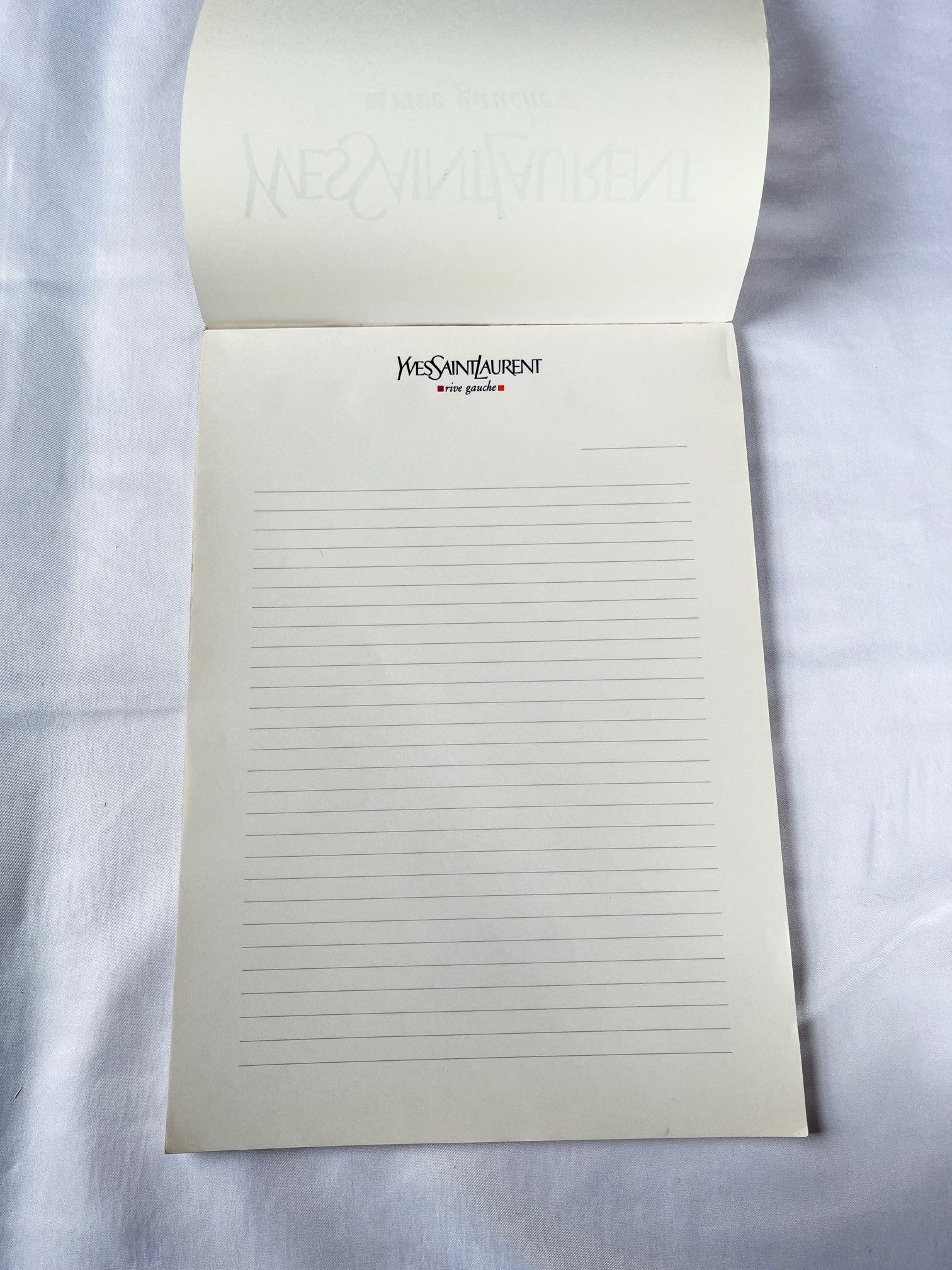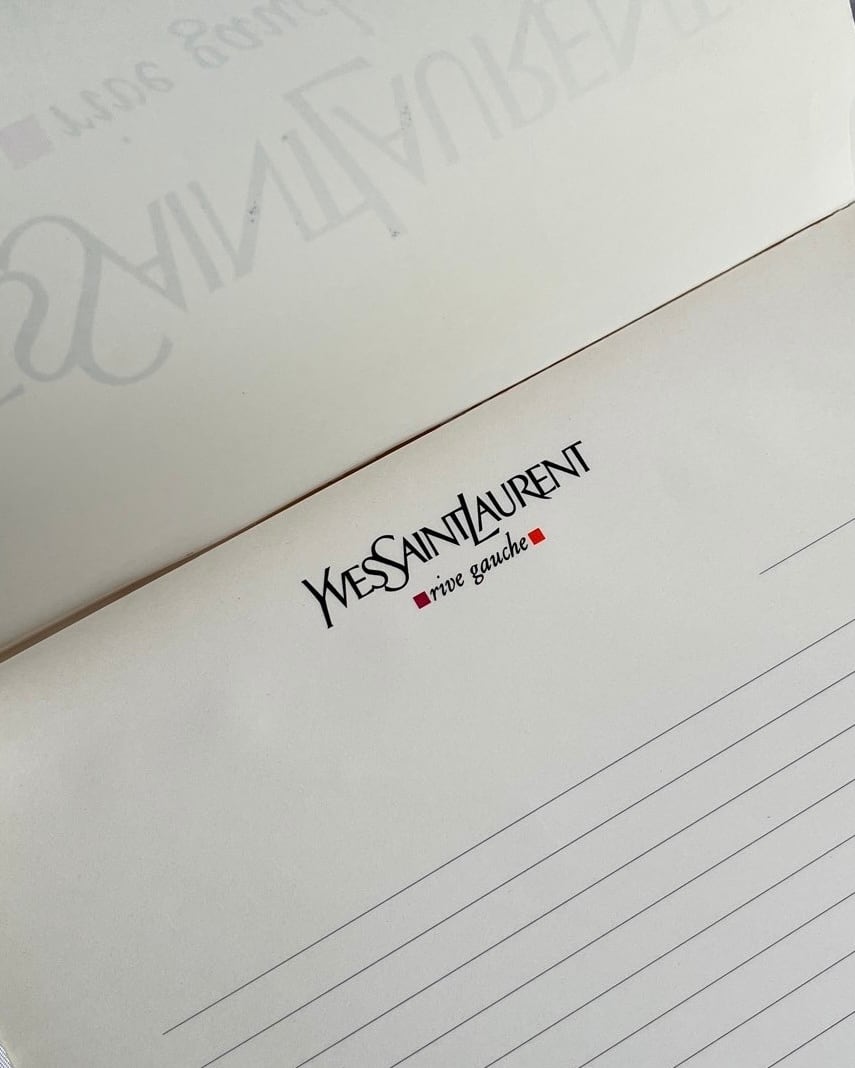 YSL rive gaucheのロゴがクールなノートブック!90’s のノベルティかと思われますが、とても珍しいアイテム。一枚一枚それぞれにもロゴが入っていて手紙としてもらっても喜ばれるデザイン☆ロゴとホワイトのパキッとしたコントラストがスタイリッシュでそのまま飾っていても様になる一点です。