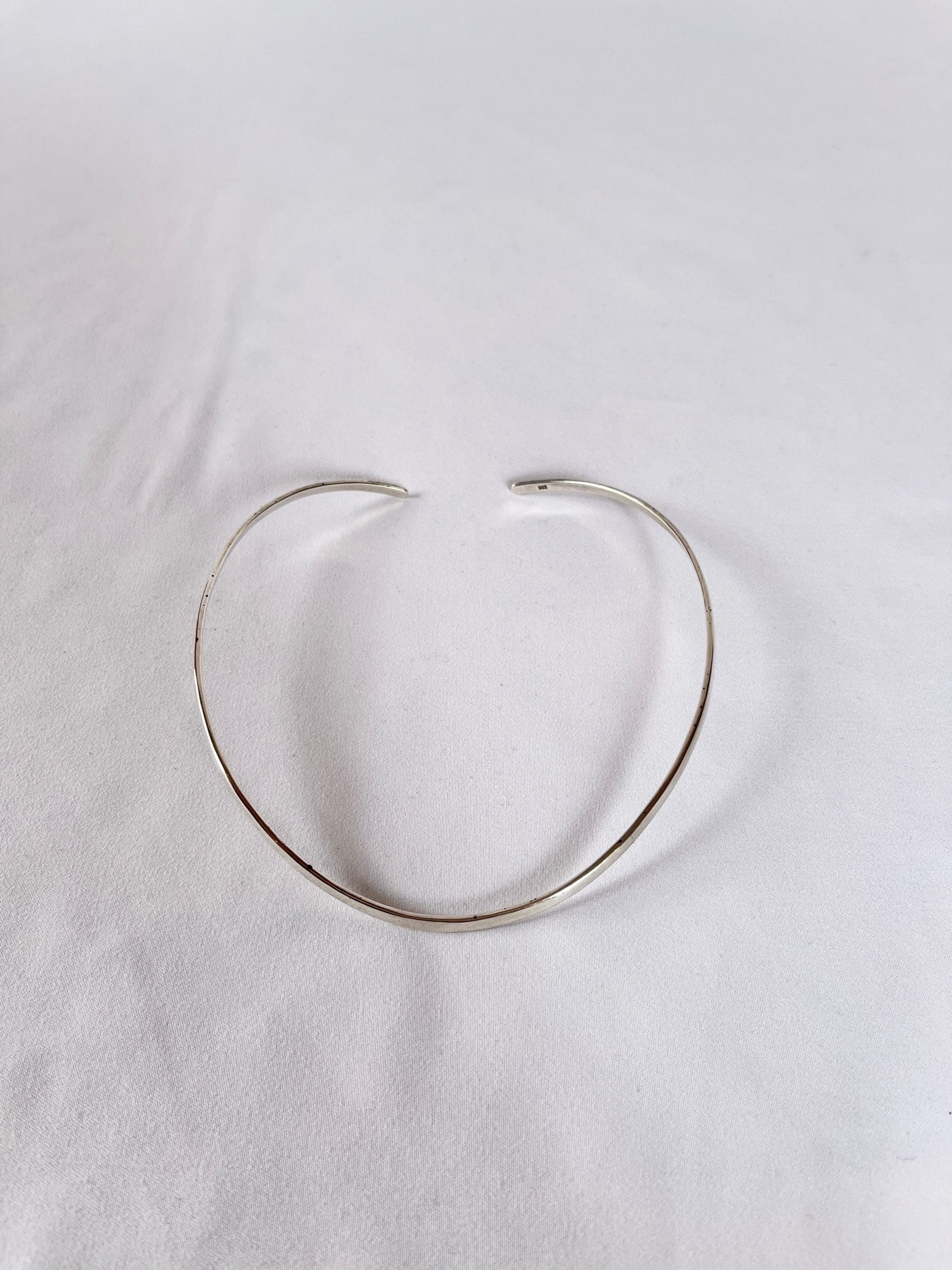 つやのあるsilverで顔回りにモードな印象を与えてくれるvintageチョーカー。やや平らなカットが洗練された印象☆ タイトめなサイズ感なので存在感もバツグン。コーデのワンポイントにぜひ!