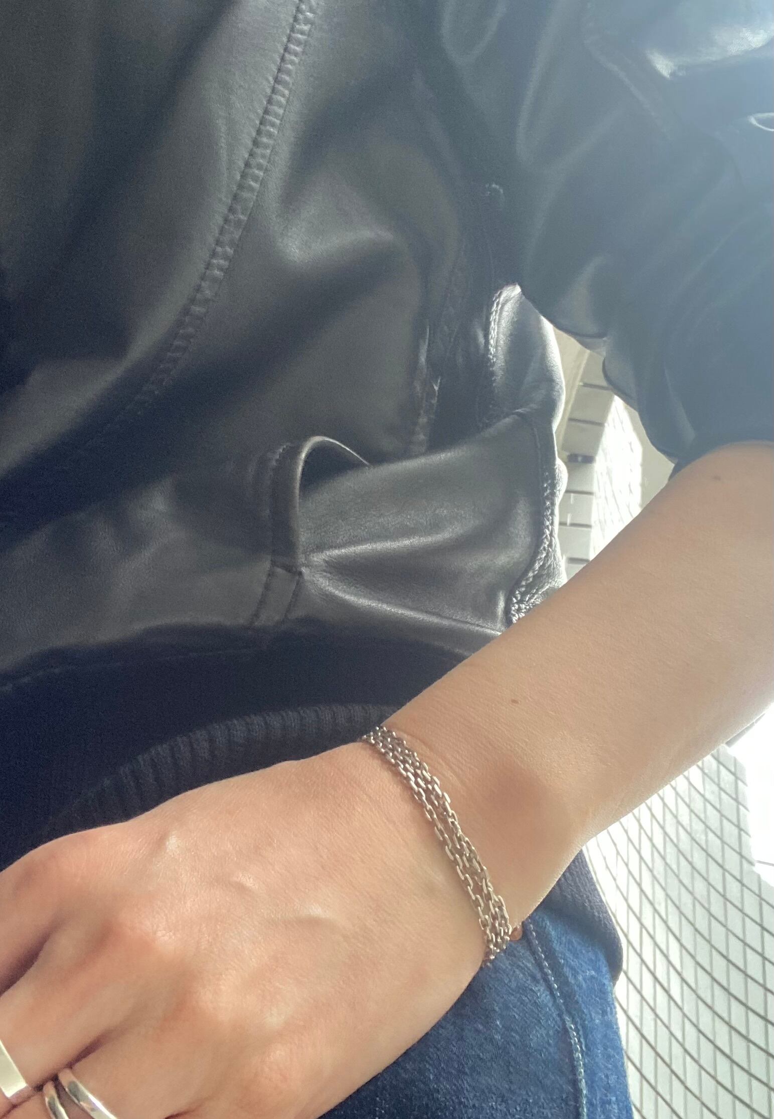 シルバー独自の白みがかった光沢感と羅列されたチェーンがスタイリッシュ。