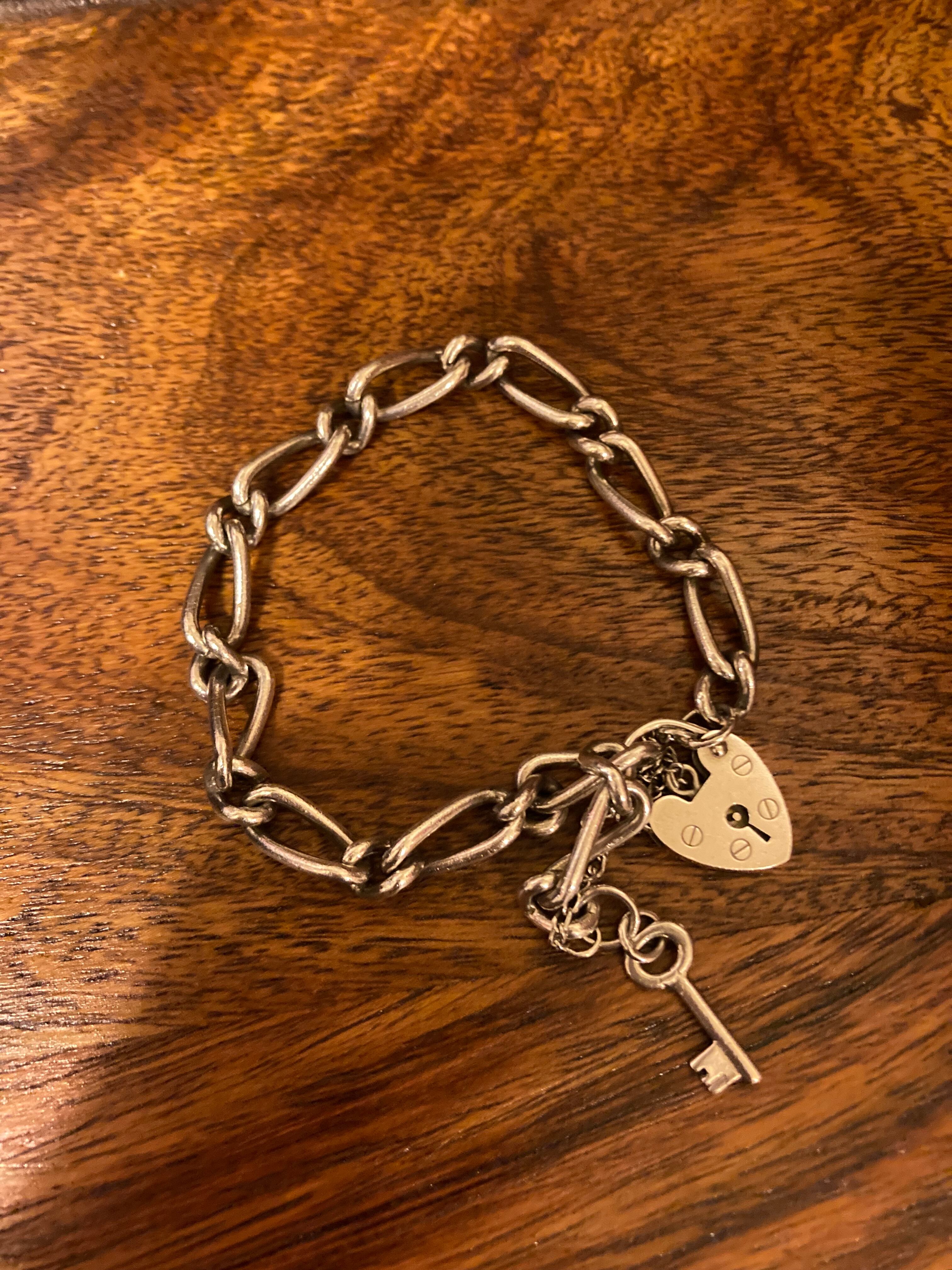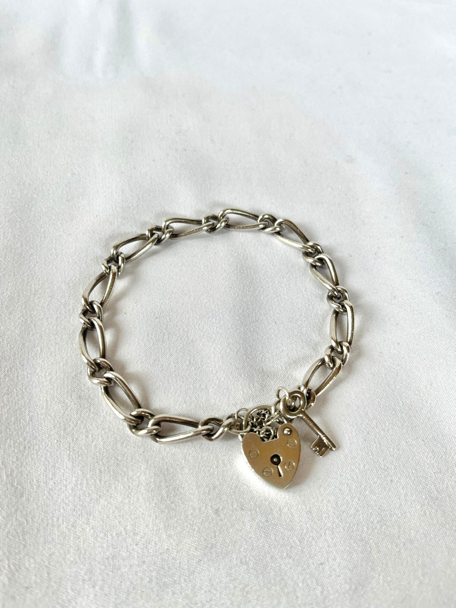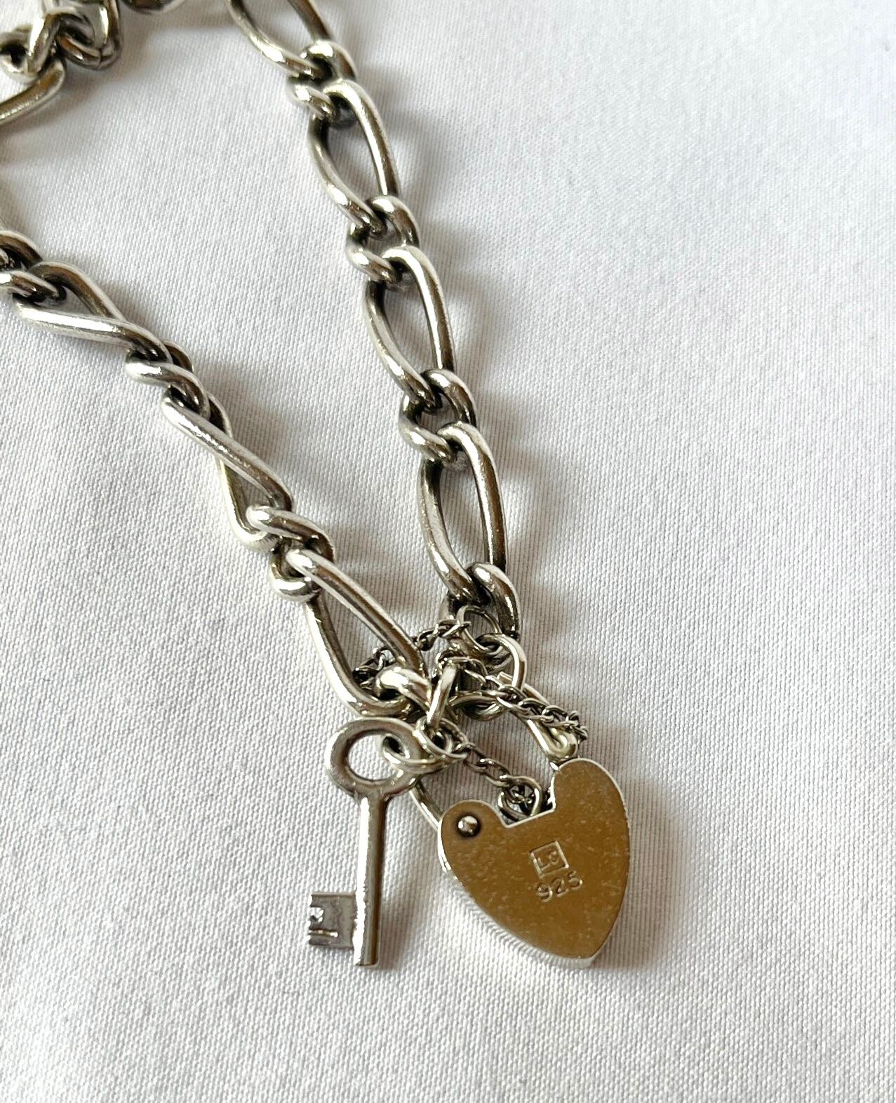 ハートの留め具がcuteなvintage silver925のブレスレット。カギモチーフもあり、遊び心のあるデザインが魅力的。