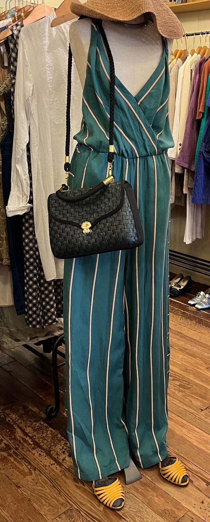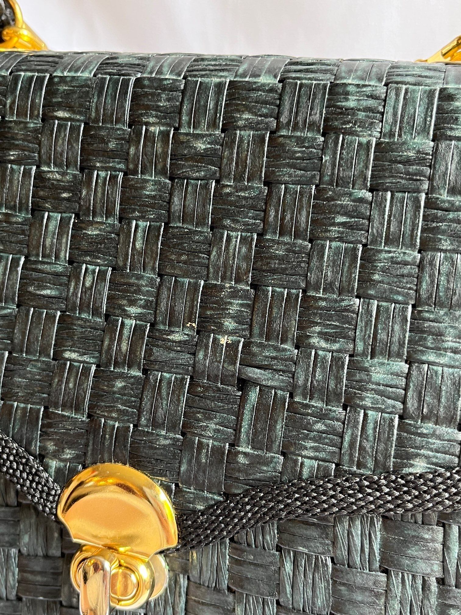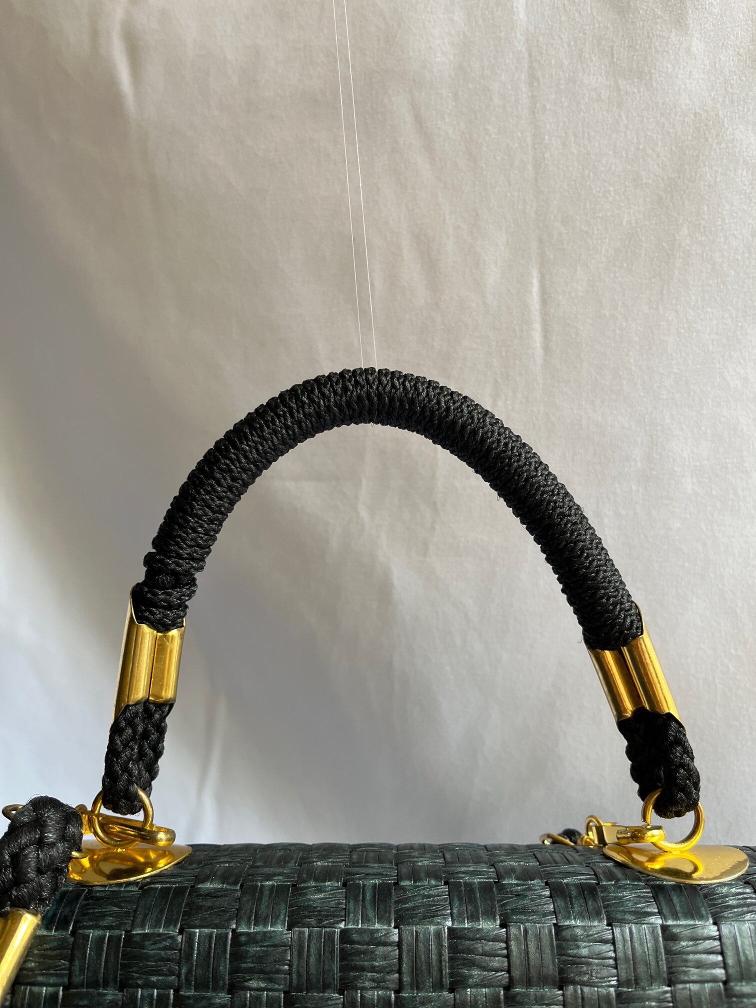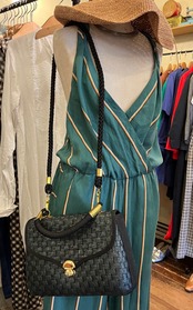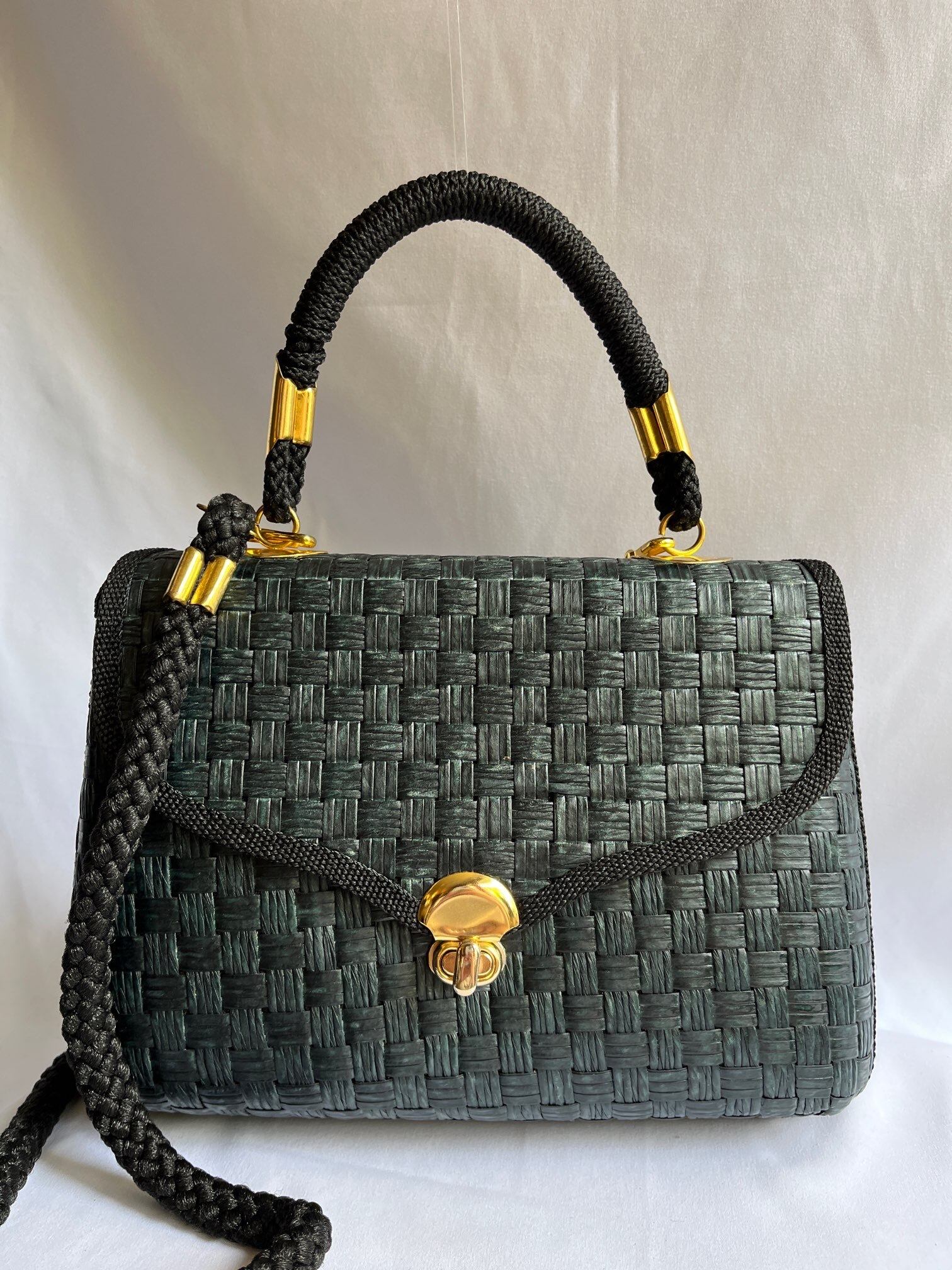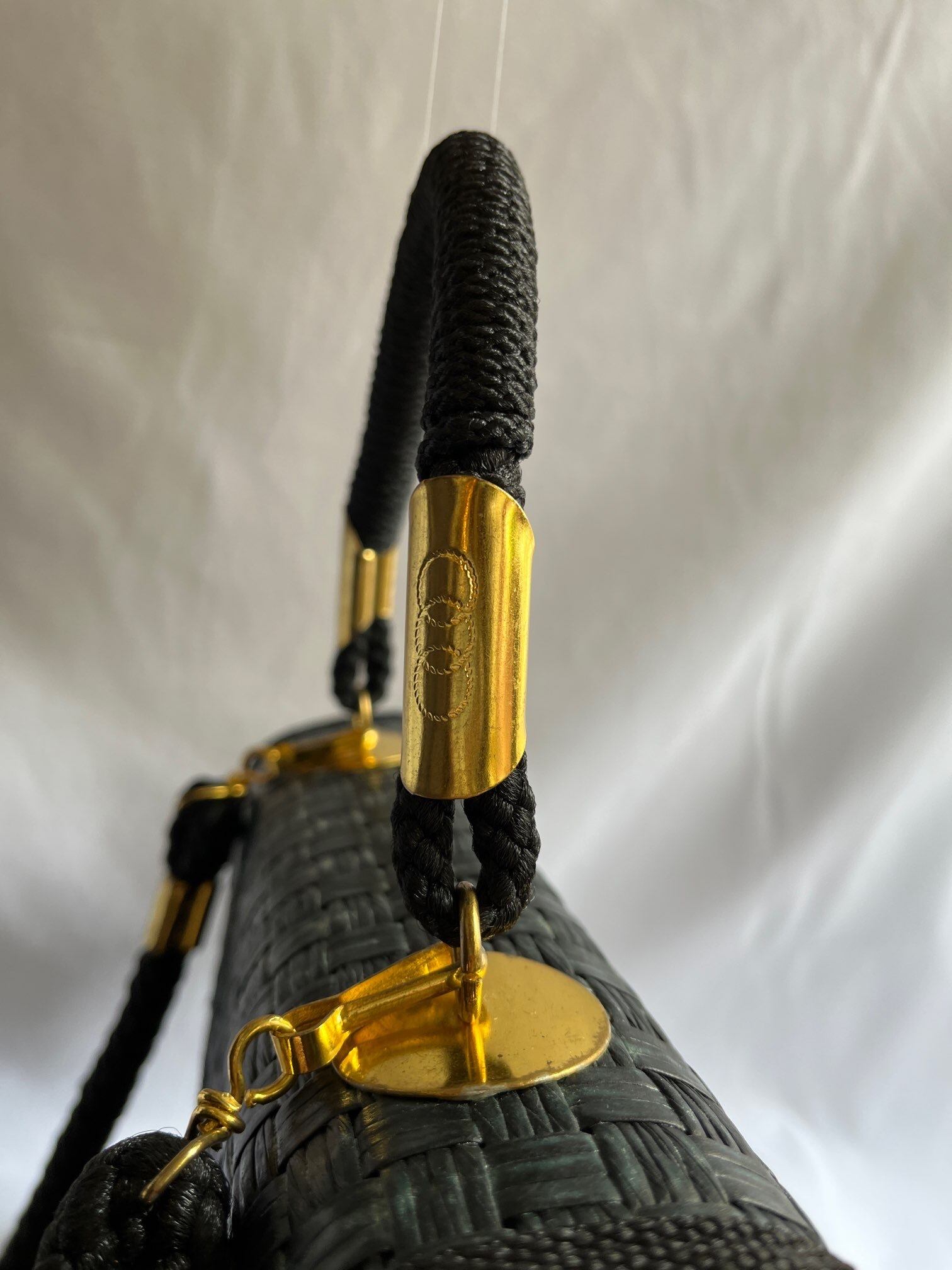 青みがかったblackラタンがモードなFrance, LA BAGAGERIEのvintage 2way bag。ゴールドのメタル金具がアクセントに効いています。