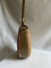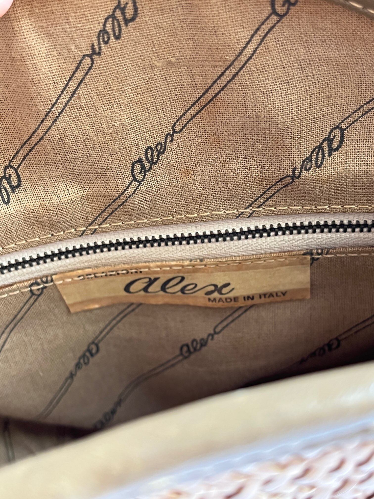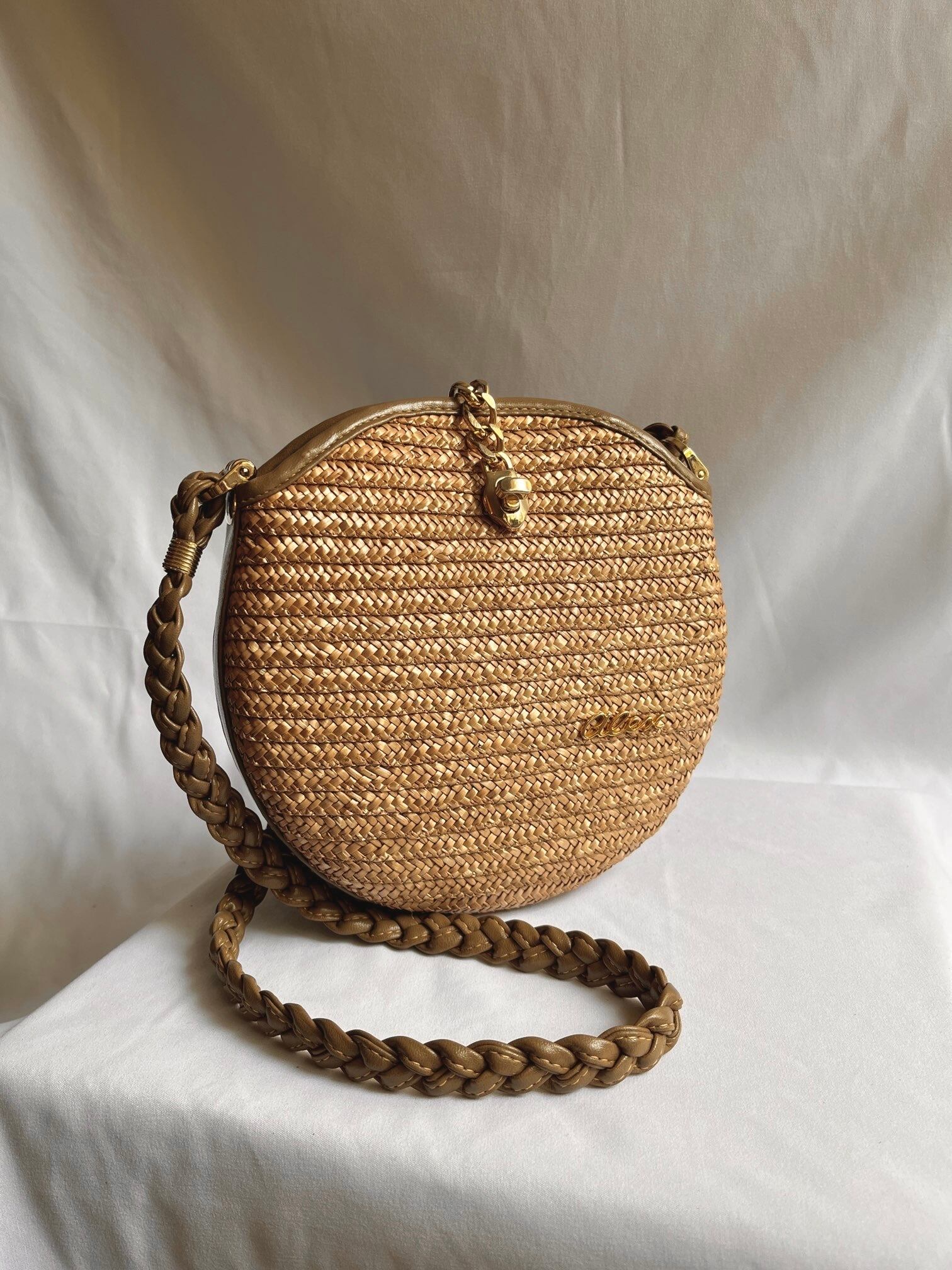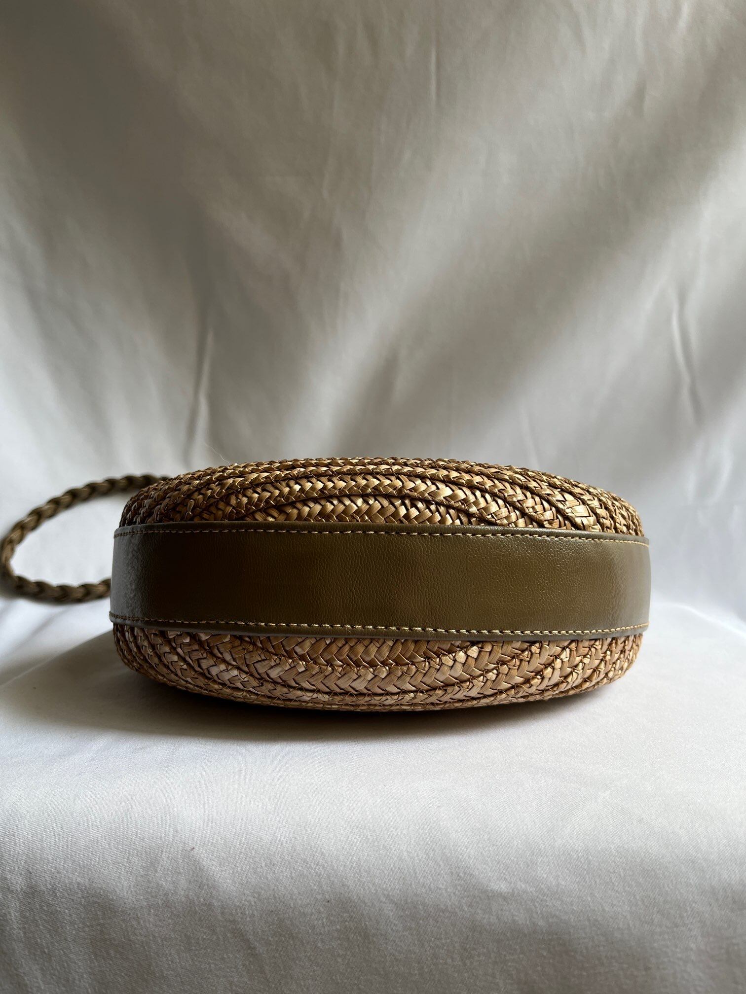 コロンとしたラウンド型がcuteなItaly vintageショルダー。ベージュのラタンが上品な印象。編みレザーのショルダーストラップがアクセントに効いています。しっかりと深さもあるので、貴重品の容量はバッチリです!