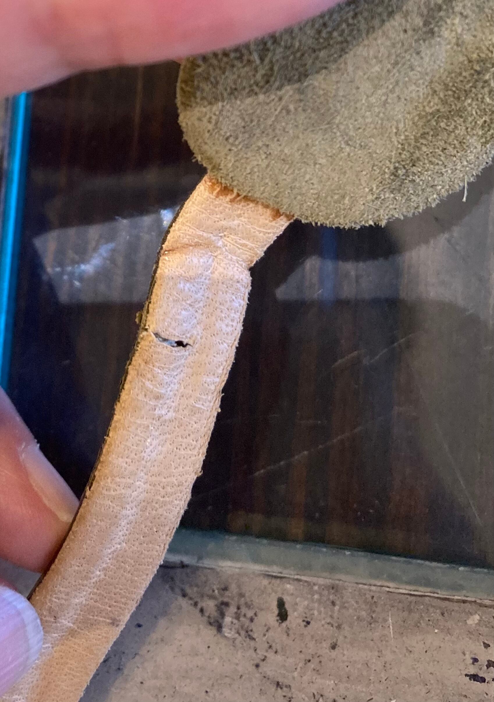 内側のレザーに1部ヒビがありますが(写真参照)、使用には問題ございません。