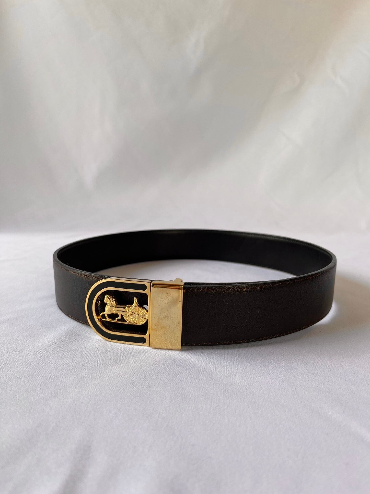 CELINE 1980’s “Horse Carriage Buckle” & "Black×Dark Brown Leather" Reversible Belt