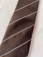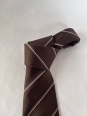 ブラウンベースにブルーとオレンジのストライプカラーが映えるDior Vintage ネクタイ。剣先の小さなDiorロゴがアクセントに効いてます☆クラシックな雰囲気が魅力の一品です。