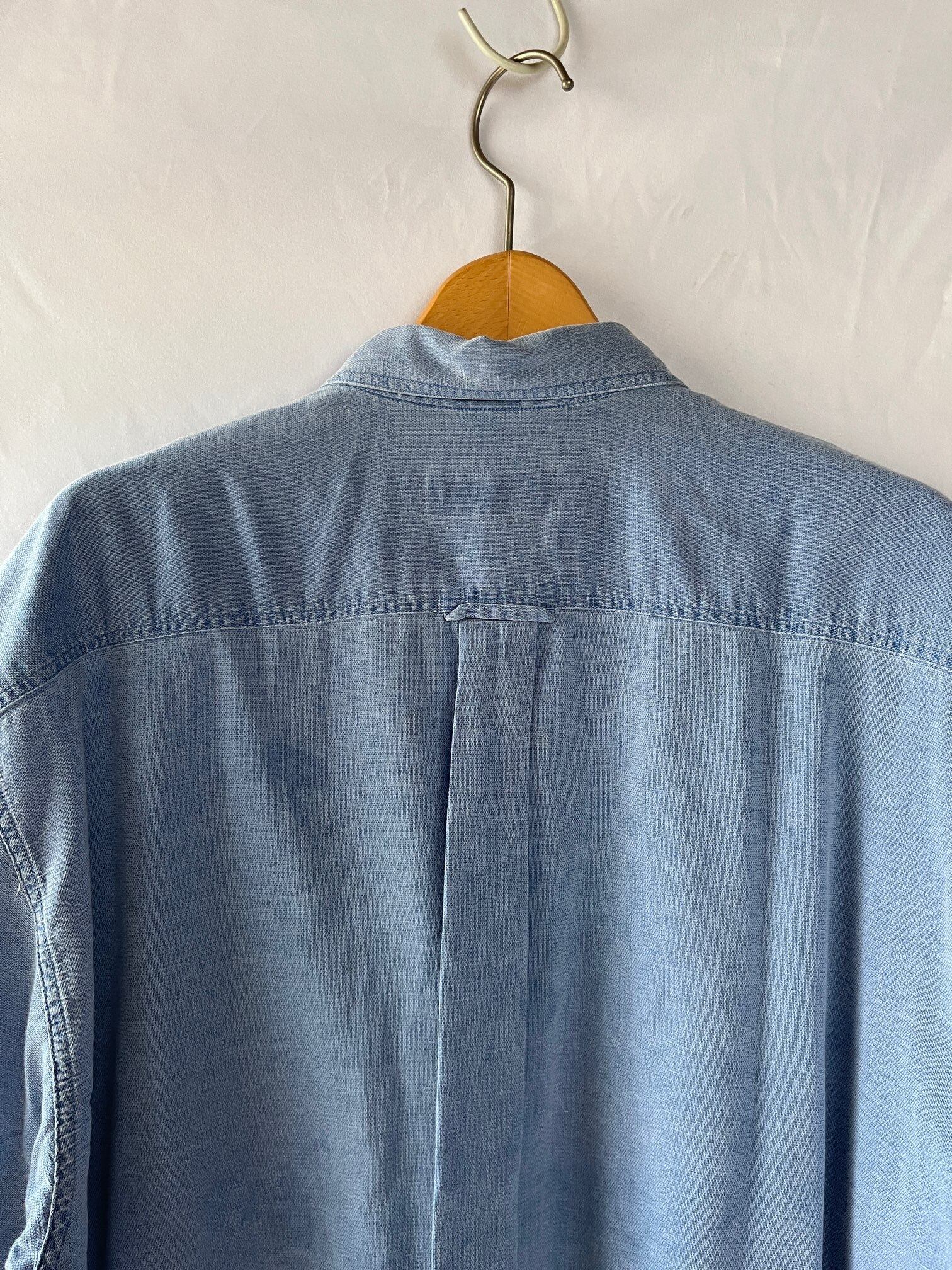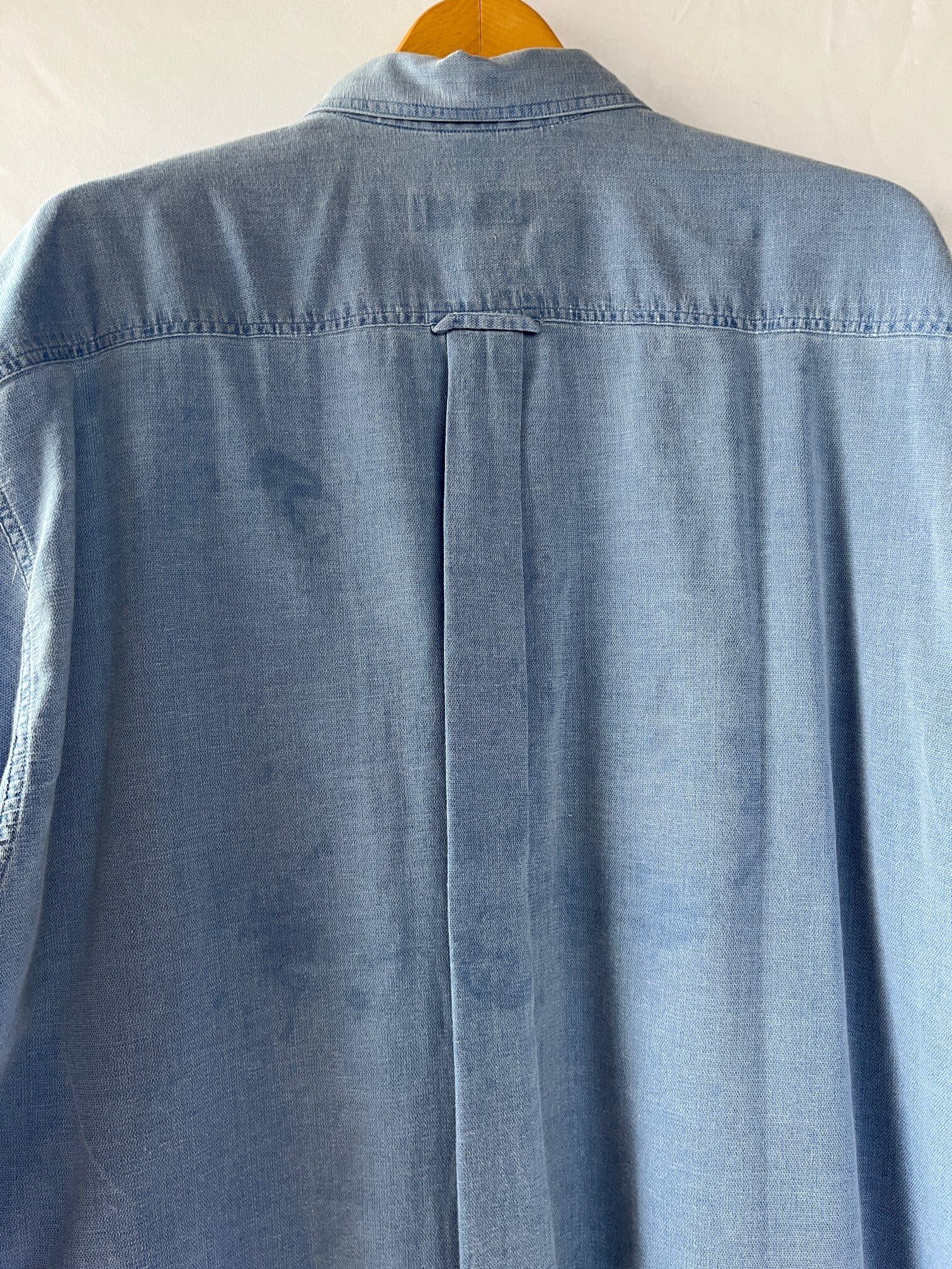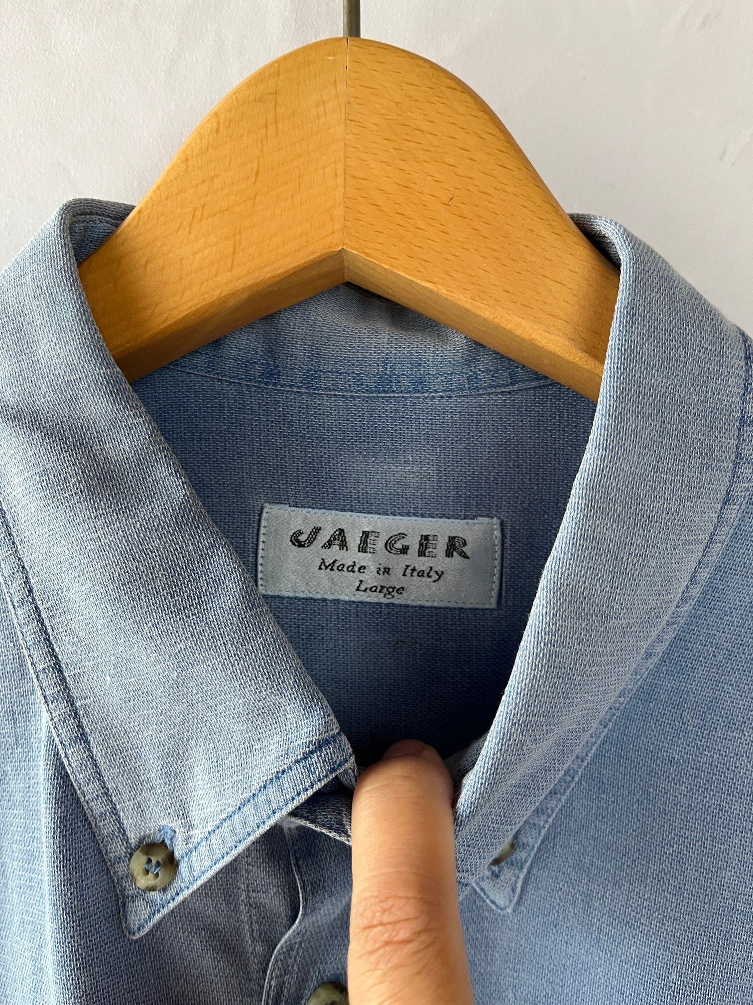 さらっとした手触りのコットン地が着心地バツグンのJAEGERメンズシャツ。ゆるっとしたサイズ感でリラックスムードが魅力的⭐︎胸元にワンポイントの刺繍ロゴも!くすんだパステルブルーが涼しげな一枚です。