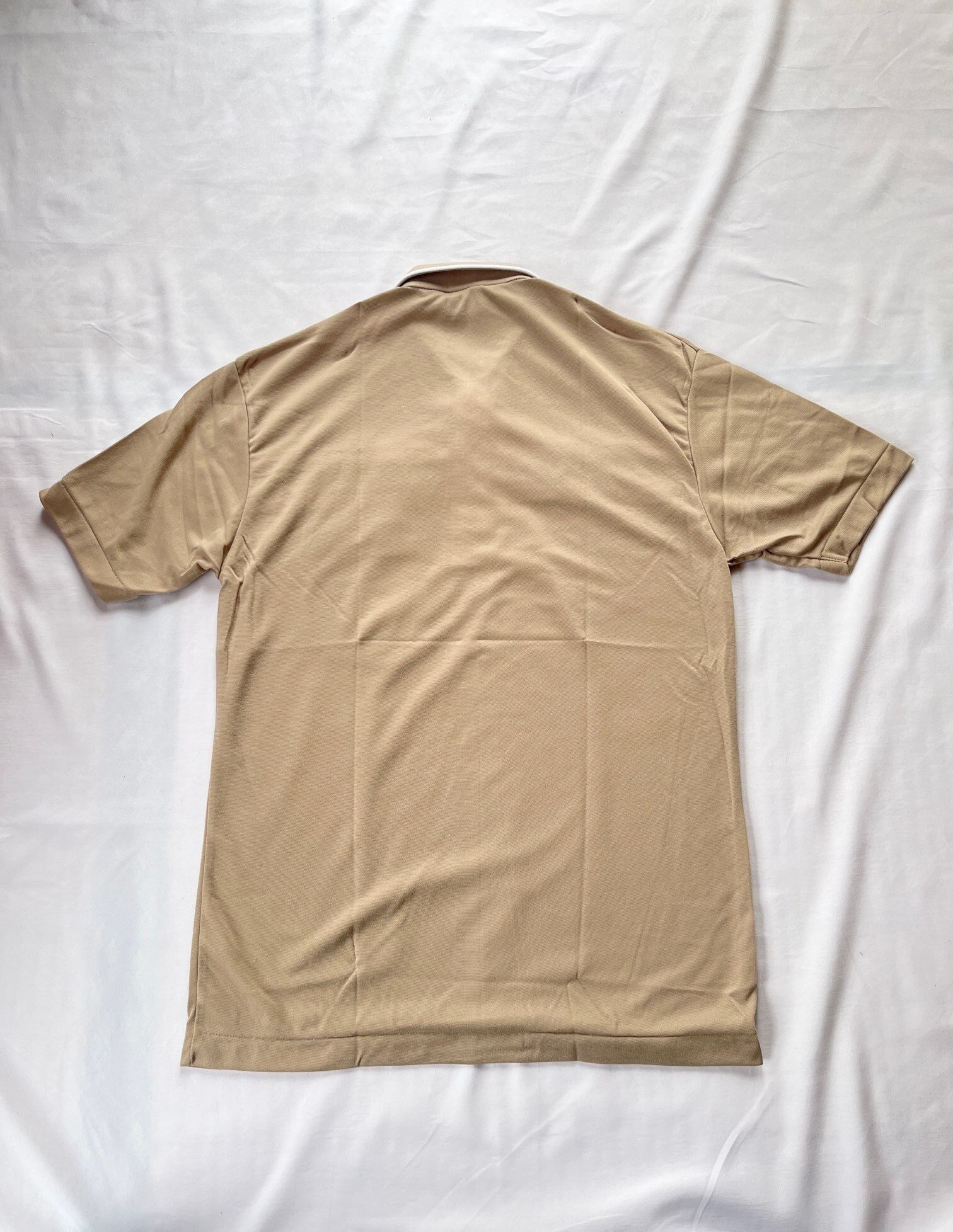 ベージュにDk.NavyのラインがシックなYSL 80’s vintageポロシャツ。Deadstock袋付き☆胸元のYSLロゴがアクセントに効いています。さらりとした質感で汗ばむ季節にもぴったりの一枚です!