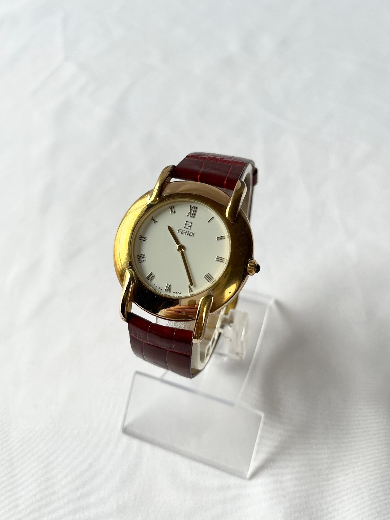 大きなゴールドのメタルフレームが存在感のあるFENDI Vintageウォッチ。men’s!