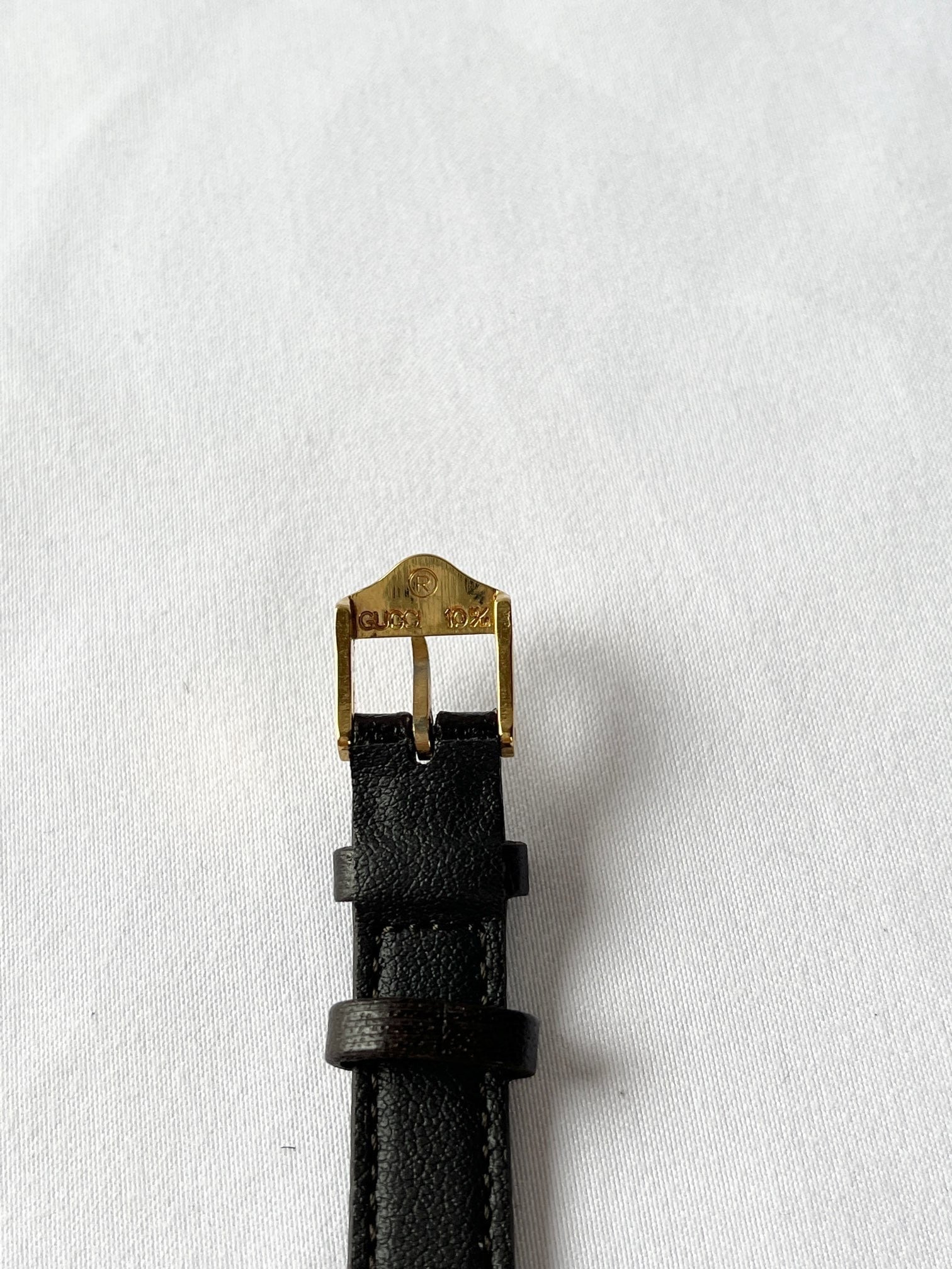 GUCCI“Gold”Face DK.Brown Leather Belt Watch