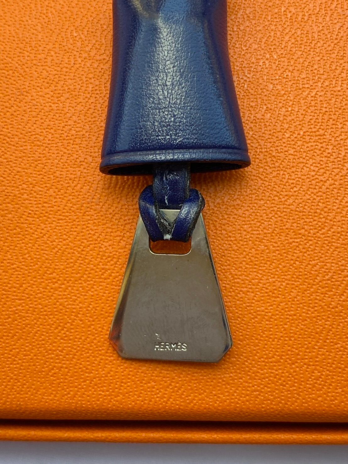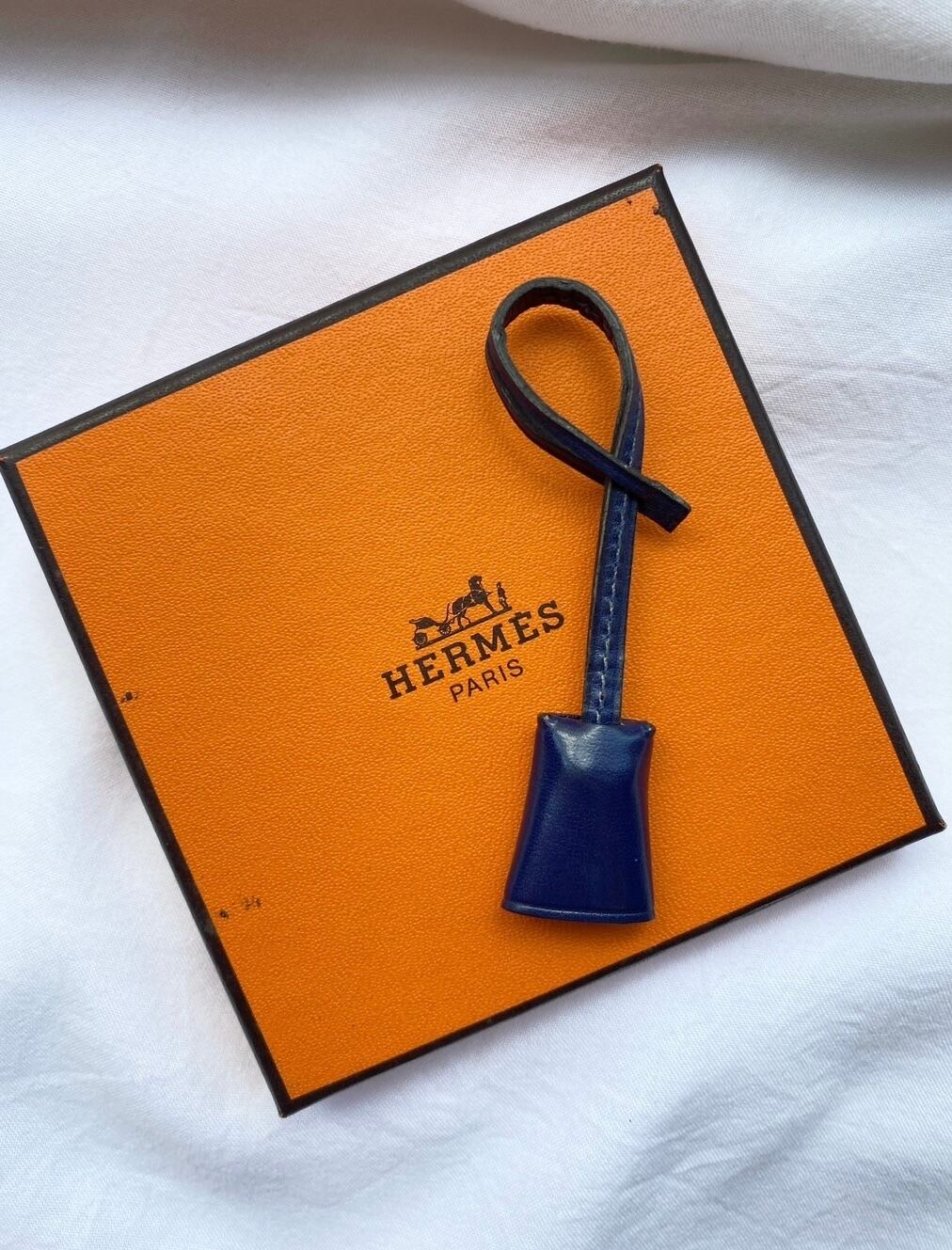ベルデザインが遊び心のあるHERMESのミニクロシェット!艶のあるネイビーカラーがさわやかな色味でHERMESらしいレザーの質感☆