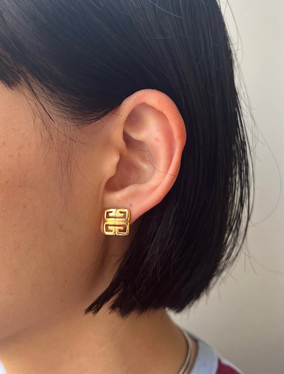 Givenchyのロゴピアスはくり抜きデザインで肌なじみの良さが魅力的。