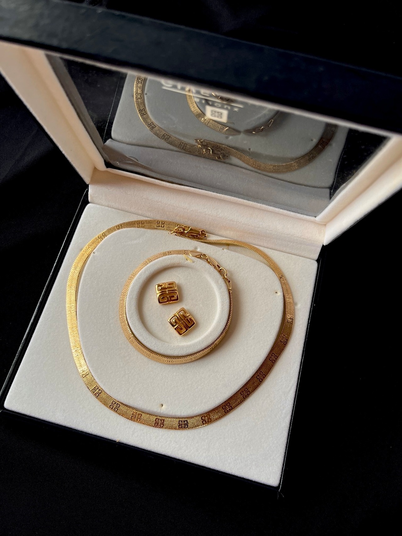 Givenchy “Gold Logo”Pierce×Bracelet×Necklace 3pcs set-Deadstock-