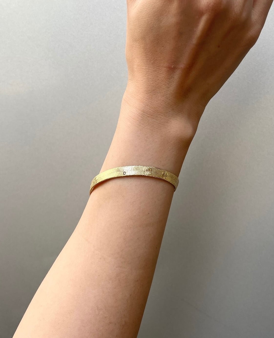 ブレスとネックレスにはうっすらとロゴが施されていて、Givenchyならではの遊び心!裏返して、プレーンな方を使っても。。