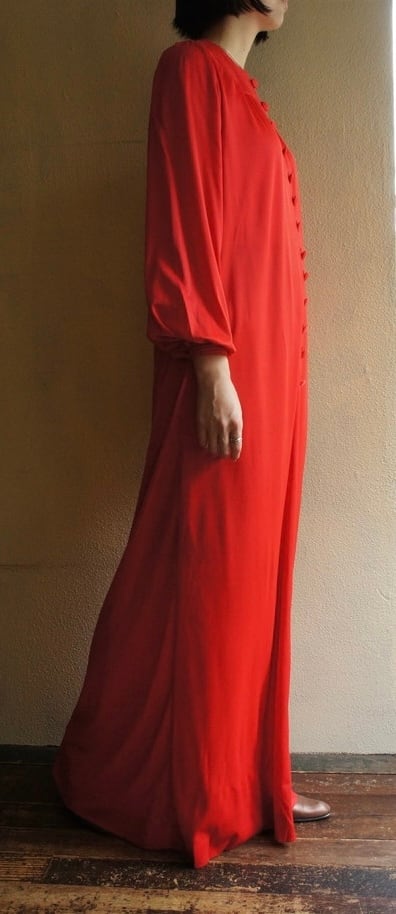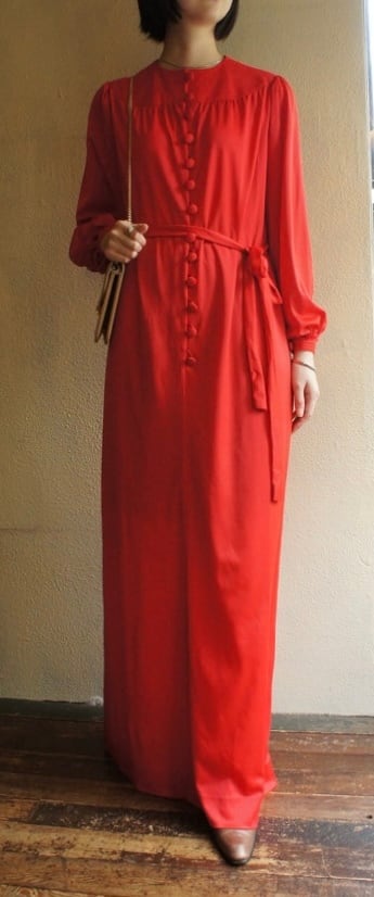 小さなボタンデザインがcuteなGivenchy 70's vintage, マキシ丈のドレス。