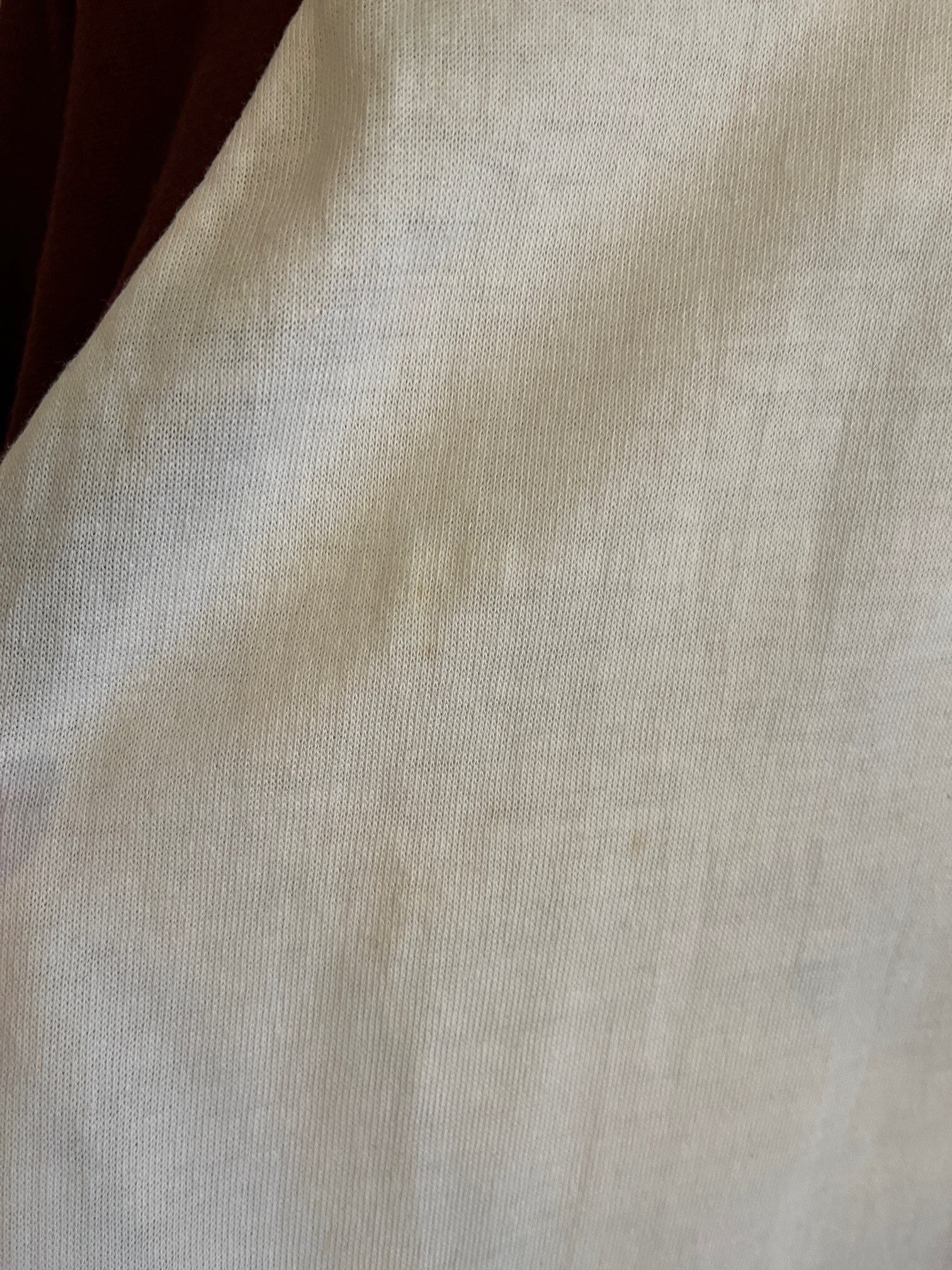 コンパクトなサイズ感が70'sらしいシルエット。首元のリブはジャージ素材になっていて、ヨレも気にせず使える一枚です。
