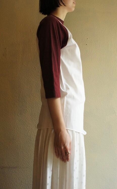 Russel 70's “Bordeaux×White”Ringer Tshirt-Deadstock-