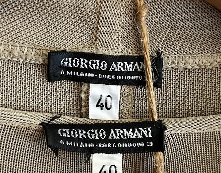 カーキベージュの色味がシックなARMANI3点セットアップ。