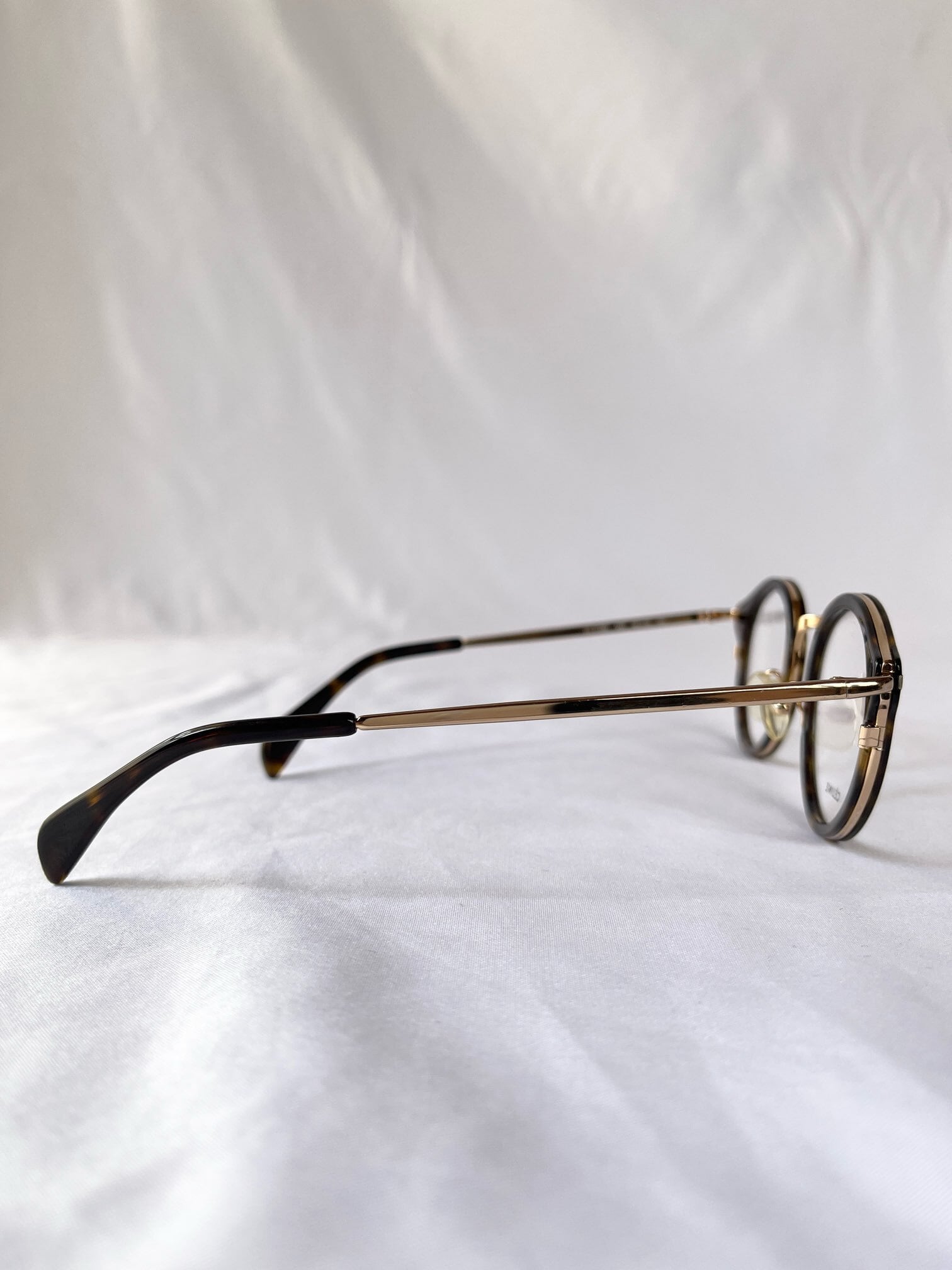 ゴールドの極細メタルアームが知的なデザイン☆浮き出たブリッジもアクセントに効いた一品です。