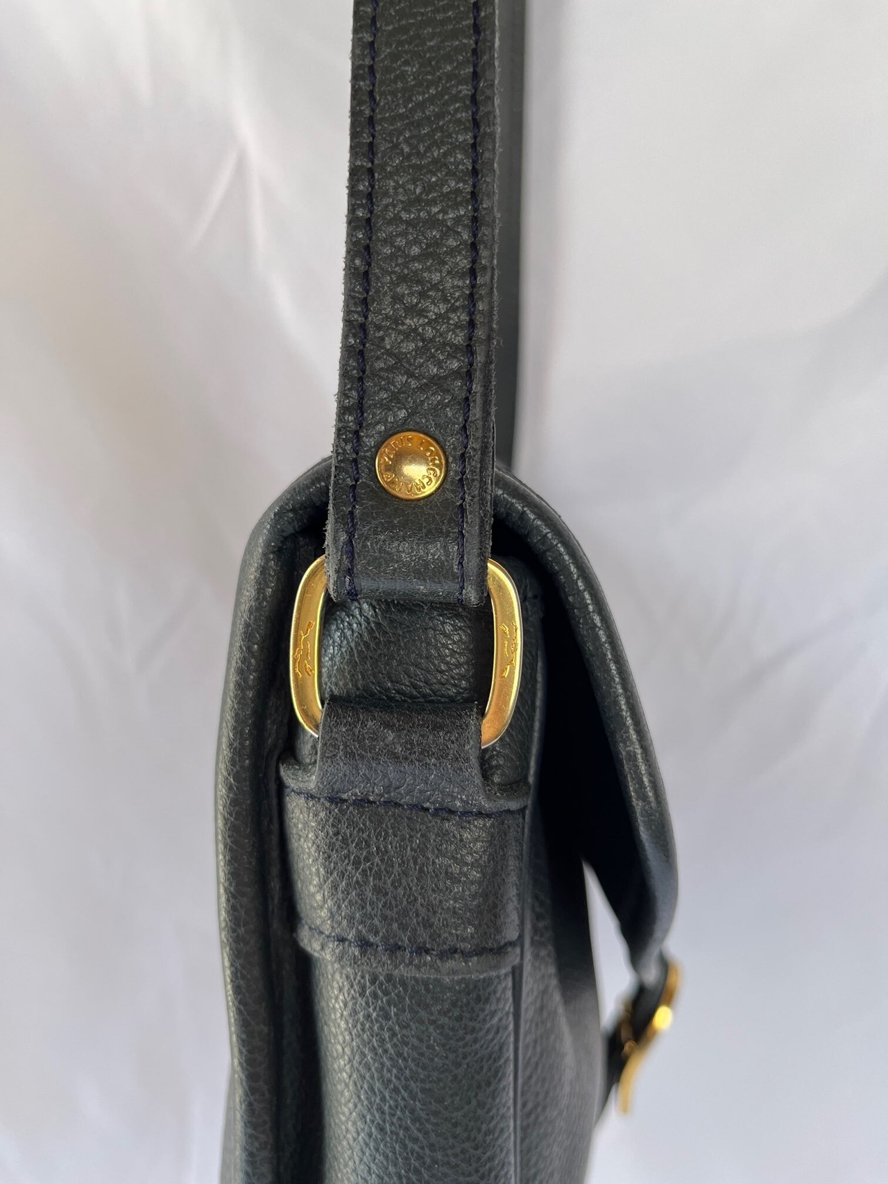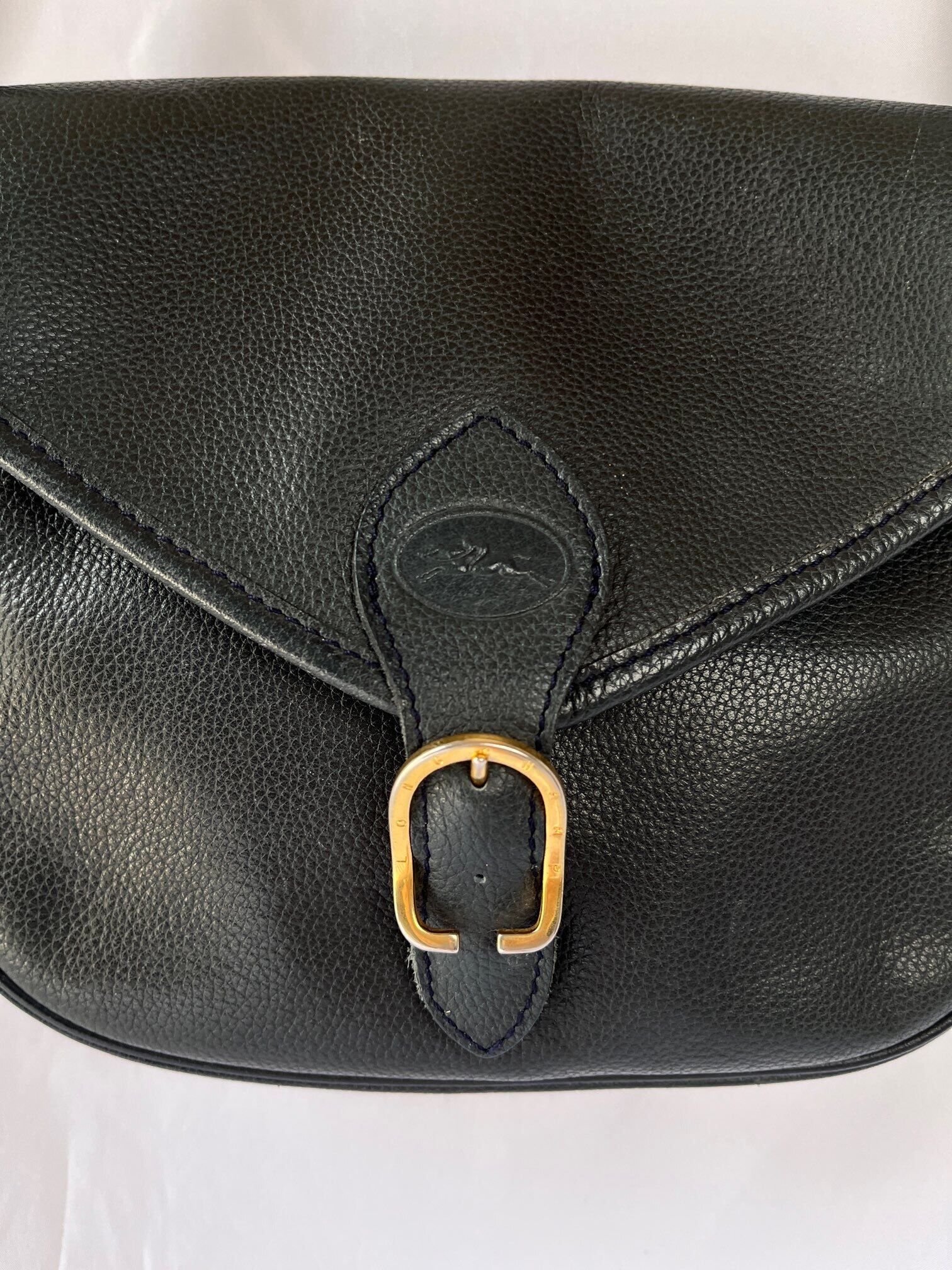 ネイビーのレザー地が気品のあるlongchampショルダーBag。