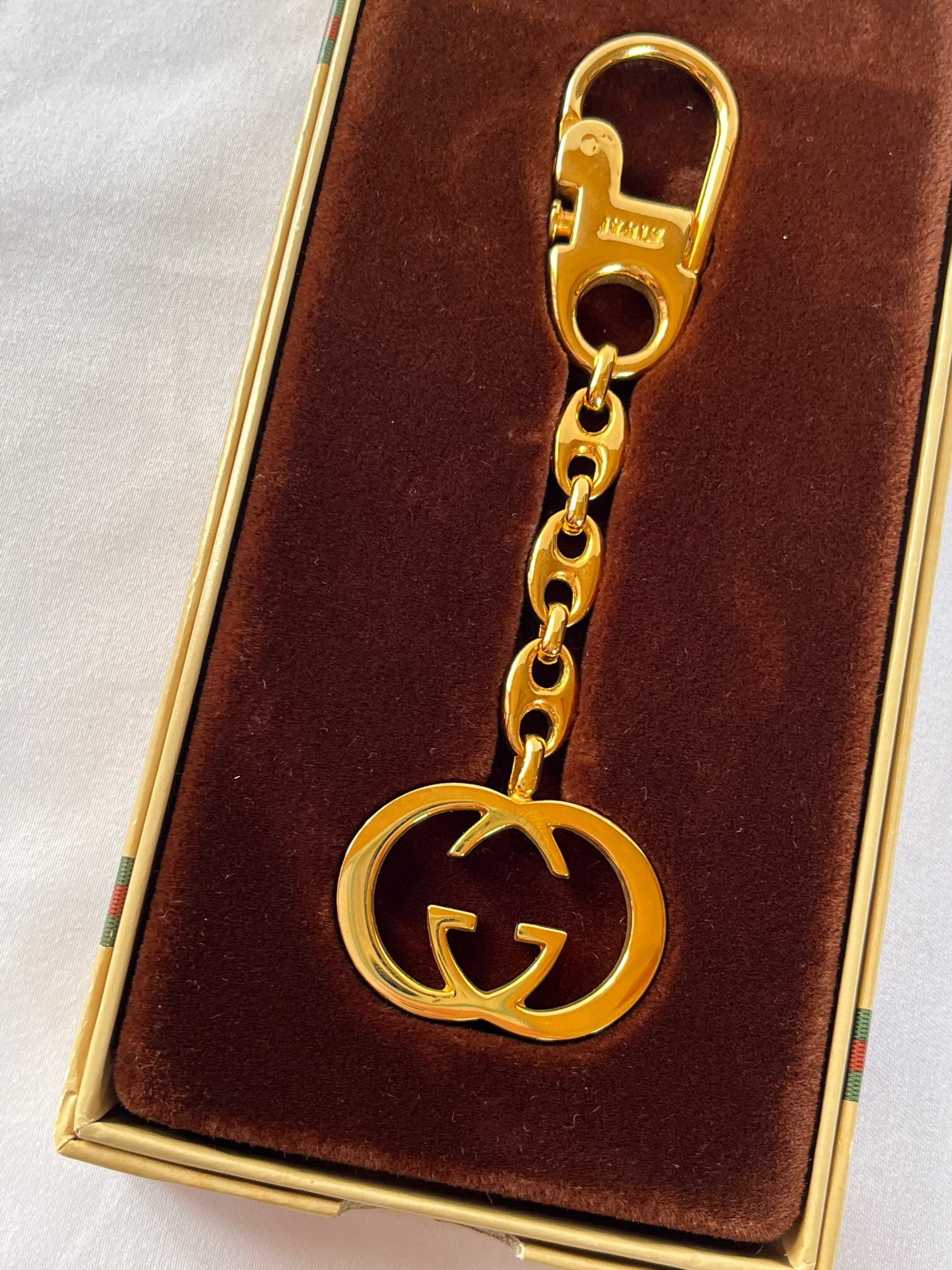 GUCCI 80's “Gold GG Logo”Key Charm with Box
