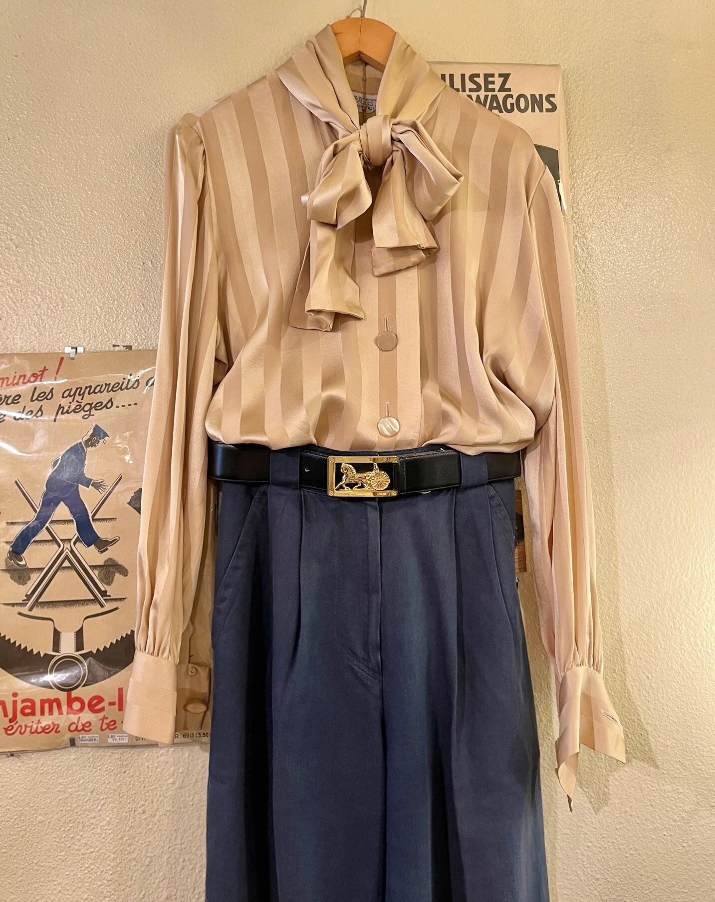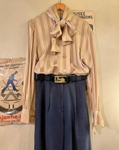 馬車ロゴがCELINEらしい80's vintageベルト。ブラックレザーベルトにゴールドのメタルバックルが映えるデザイン。馬車がくり抜きになっていて、細かな施しが繊細さも感じる一品。程良いベルト幅で使い勝手も◎