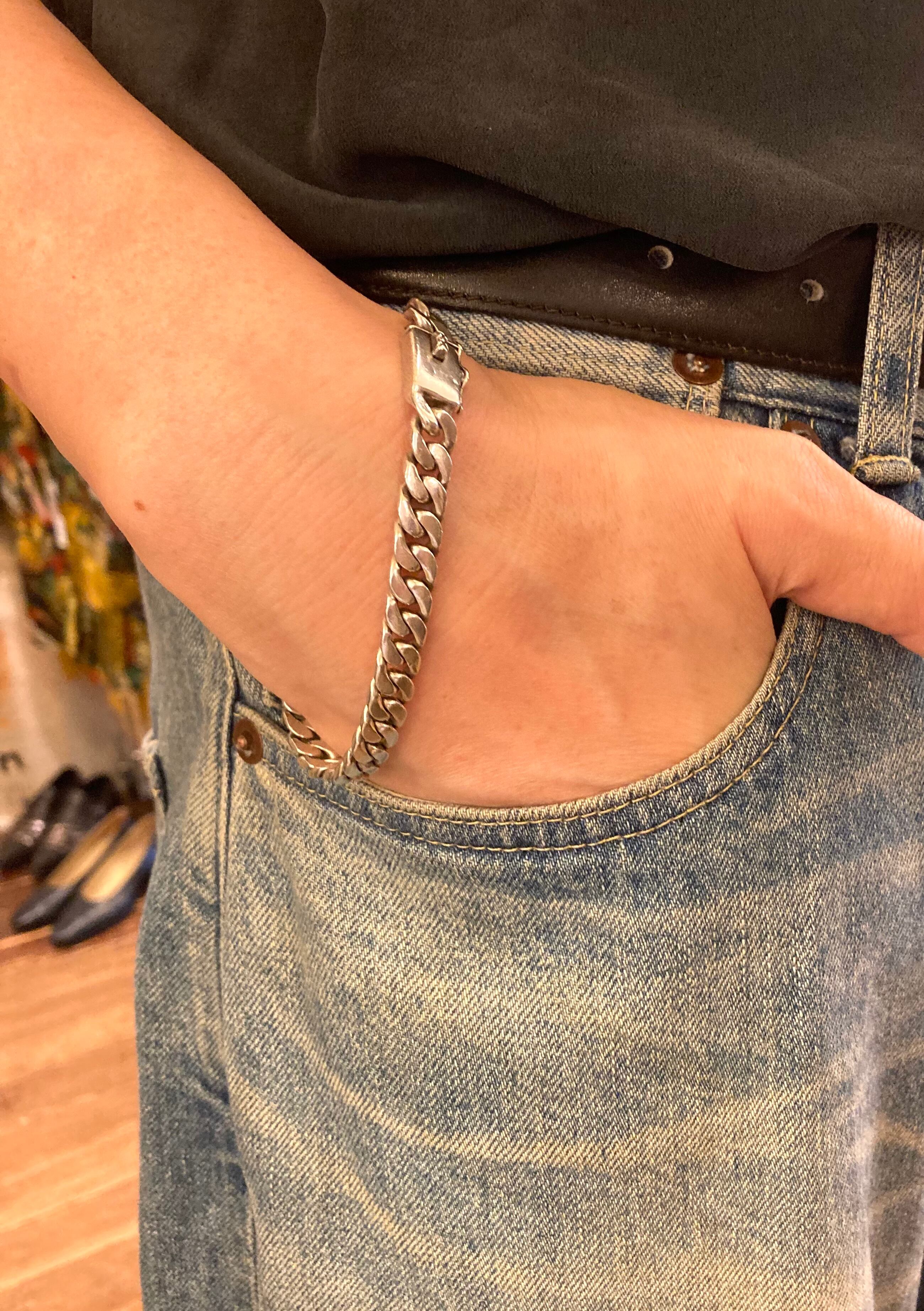 ボリュームのある喜平チェーンが存在感のあるSilverブレス。Silverならではな重厚感のあるつくりが魅力的。留め具も凝ったデザインで芸術的なディテール!手元が一気に華やぐ一品です。