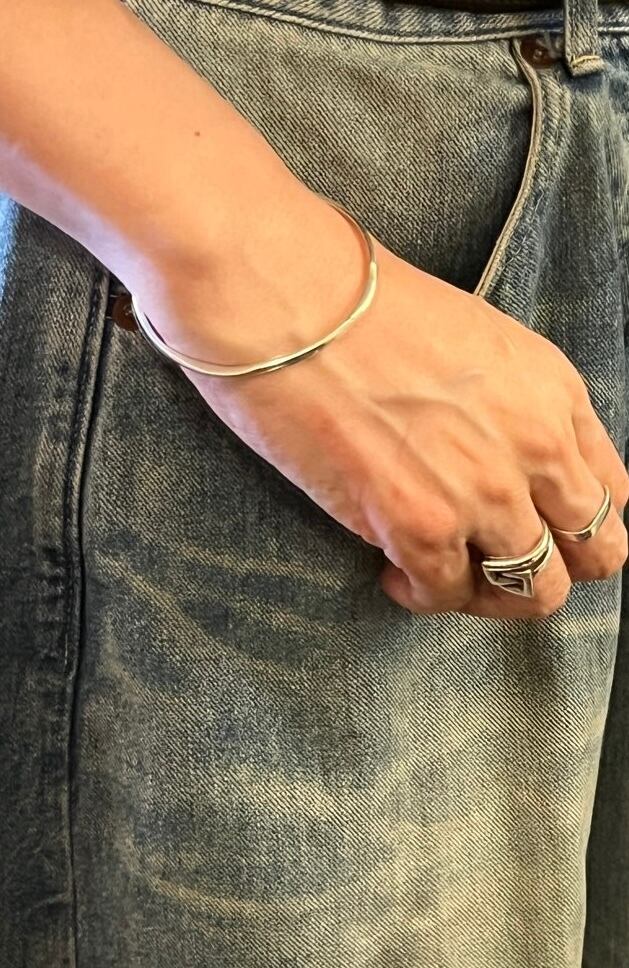 モチーフレスなデザインがモードなEuro Vintage Silver バングル。横から見るとウェーブがかっていて、抑揚のあるデザイン。シンプルながらもスタイリッシュで目をひく一品です。