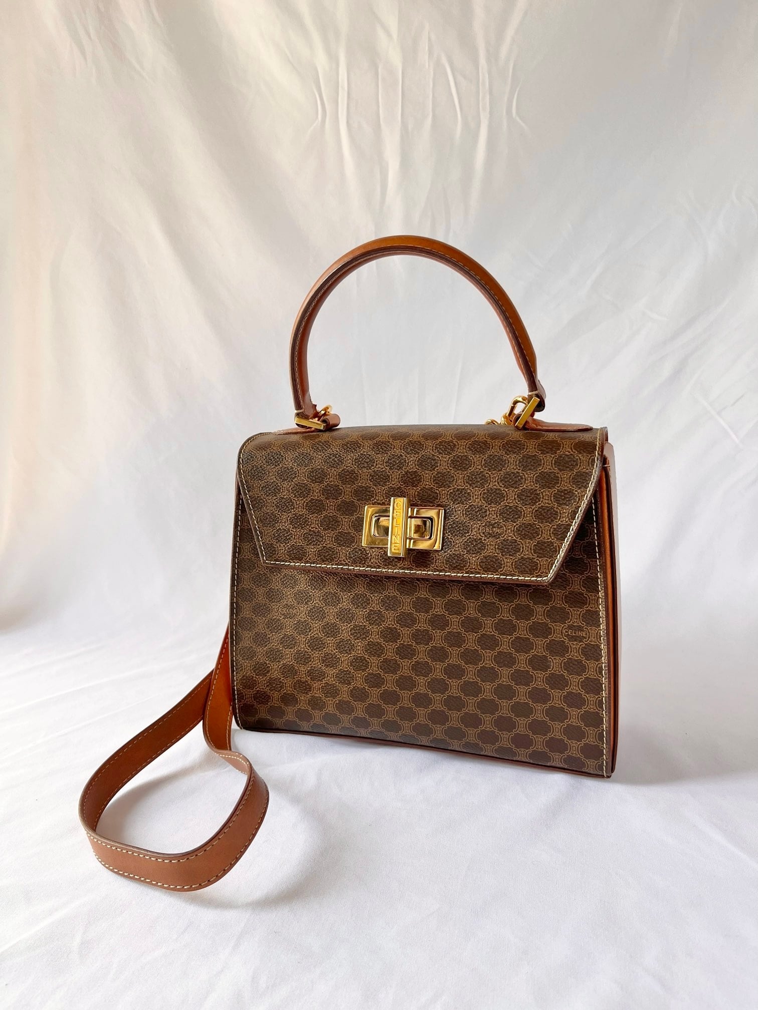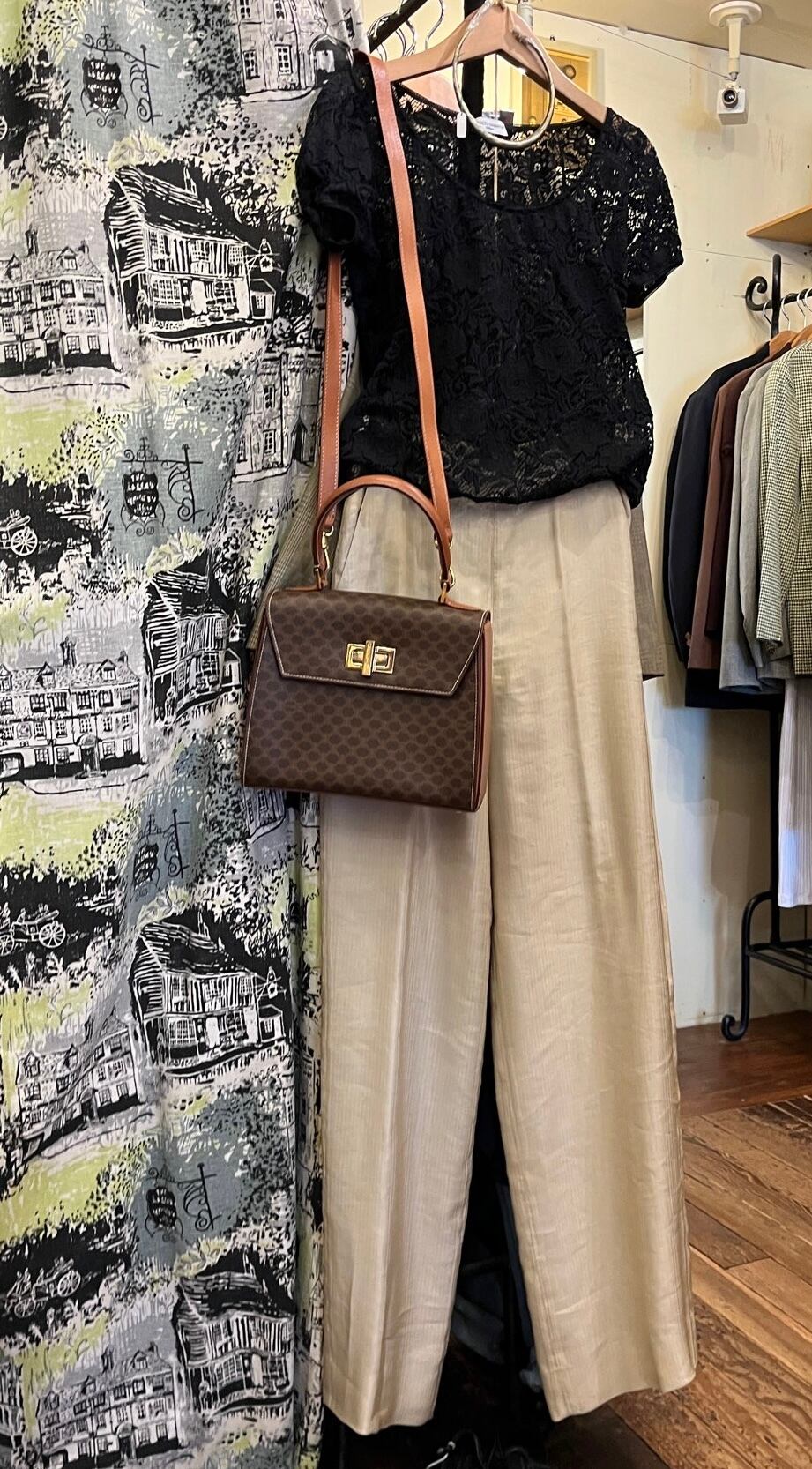 マカダム柄にDK.Brownレザーの異素材コンビがメリハリのあるCELINE1980's Vintage Bag。