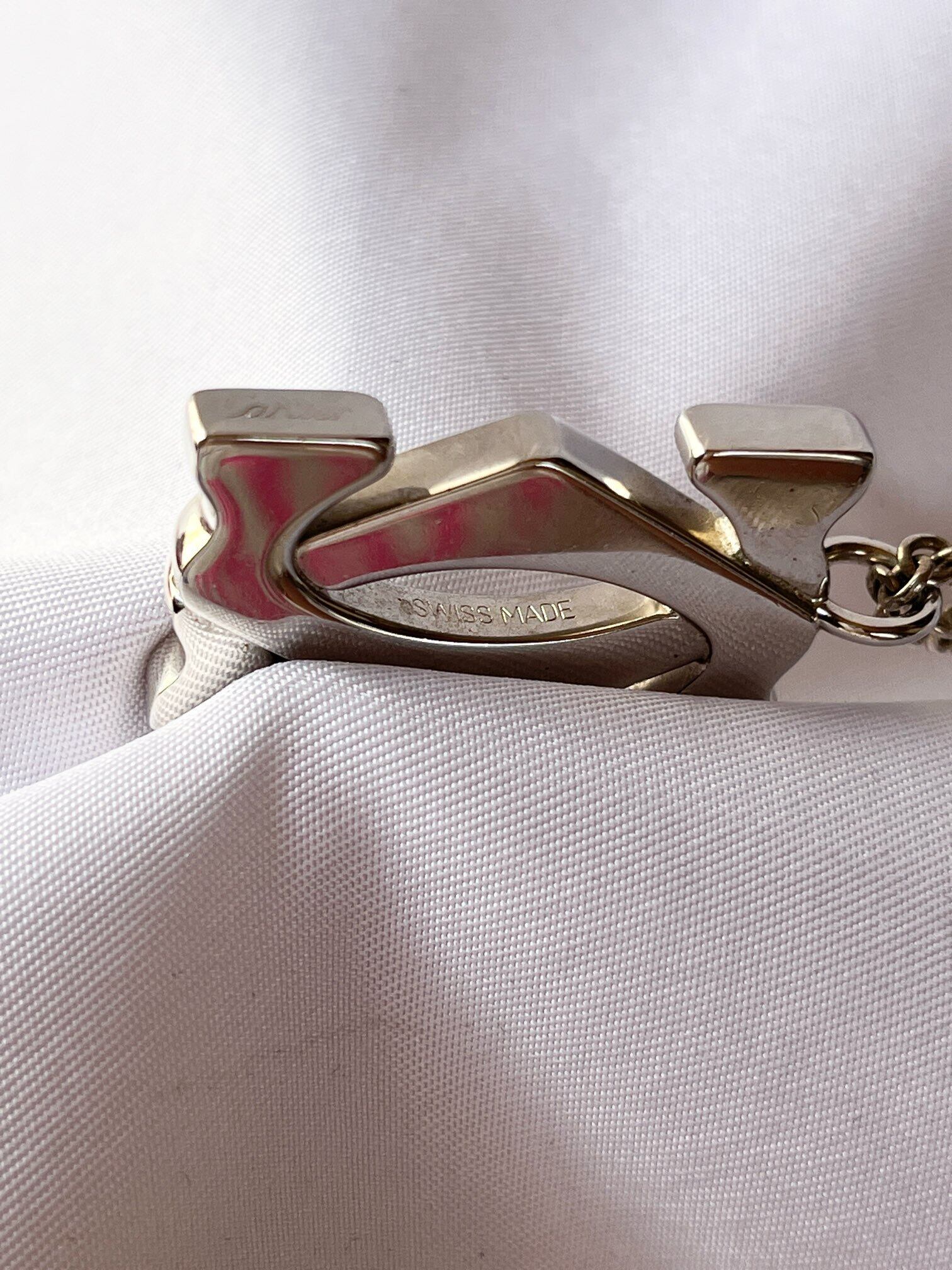 大きなロゴモチーフが目をひくCartierチェーンネックレス。Swiss製のシルバーカラーのトップは厚みがあり、存在感もバツグン!