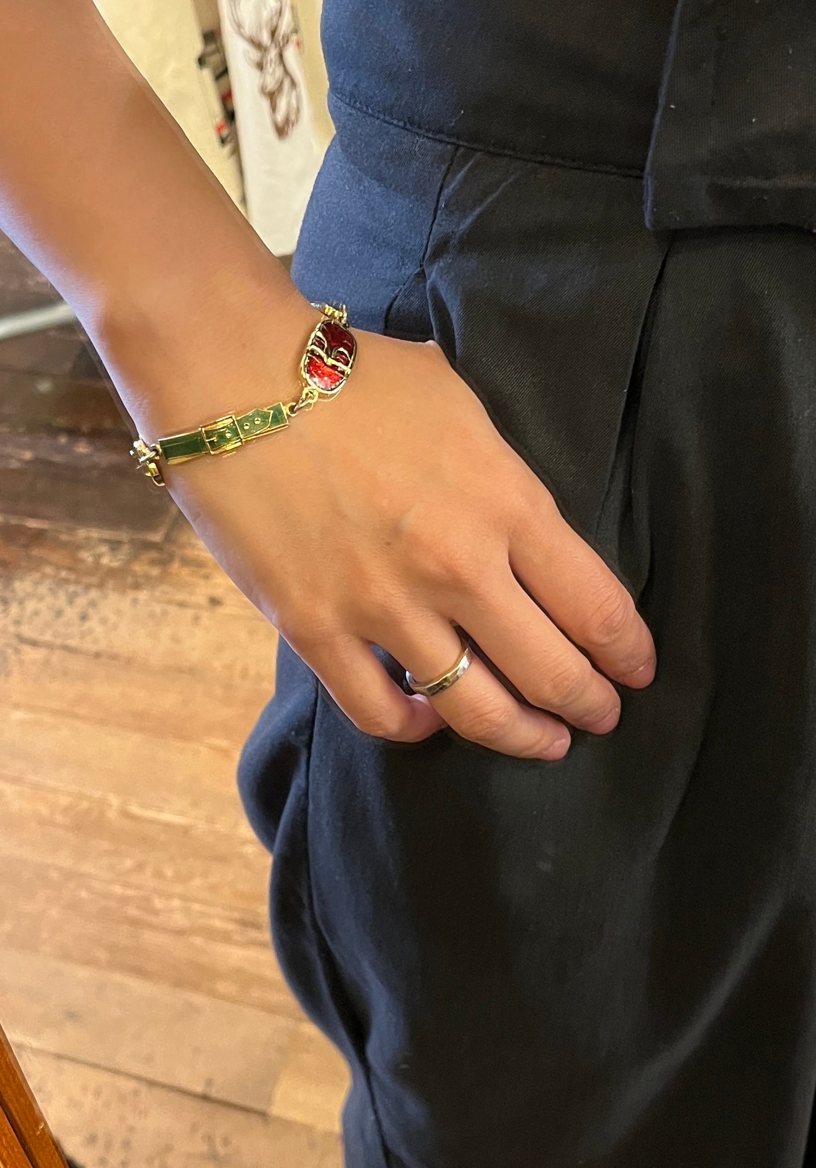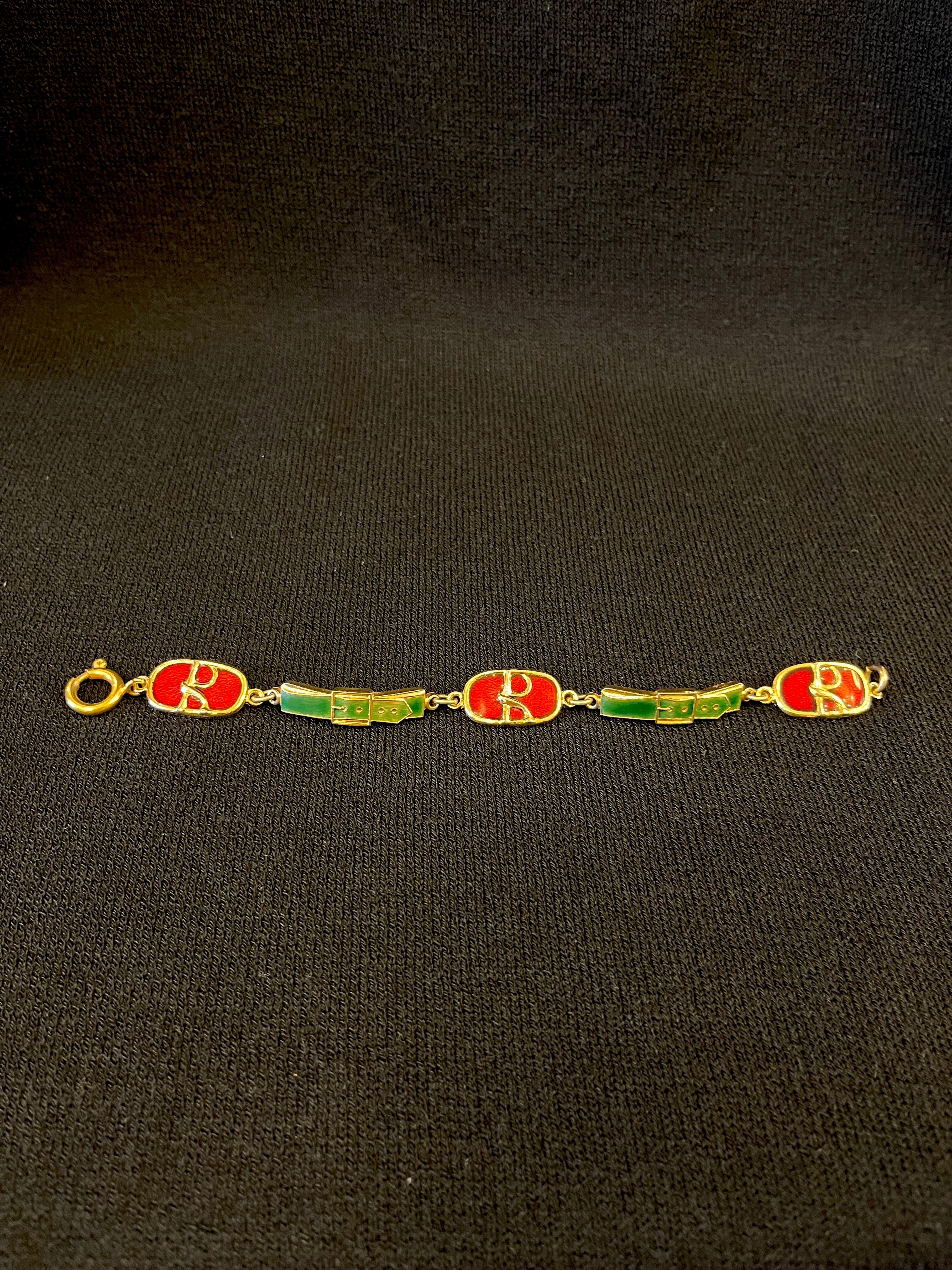 赤いロベルタロゴとグリーンのベルトモチーフがRobertaらしい80's vintage ブレスレット。