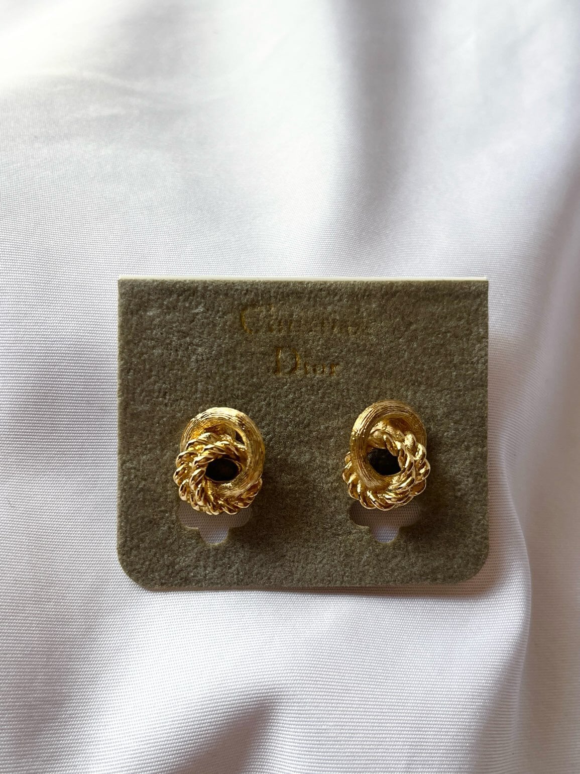 ダブルフープのデザインが目をひくDior vintage イヤリング。上部は細かい切れ込みが入っていて下部はツイスト状の異なるデザインが楽しめる一品です。