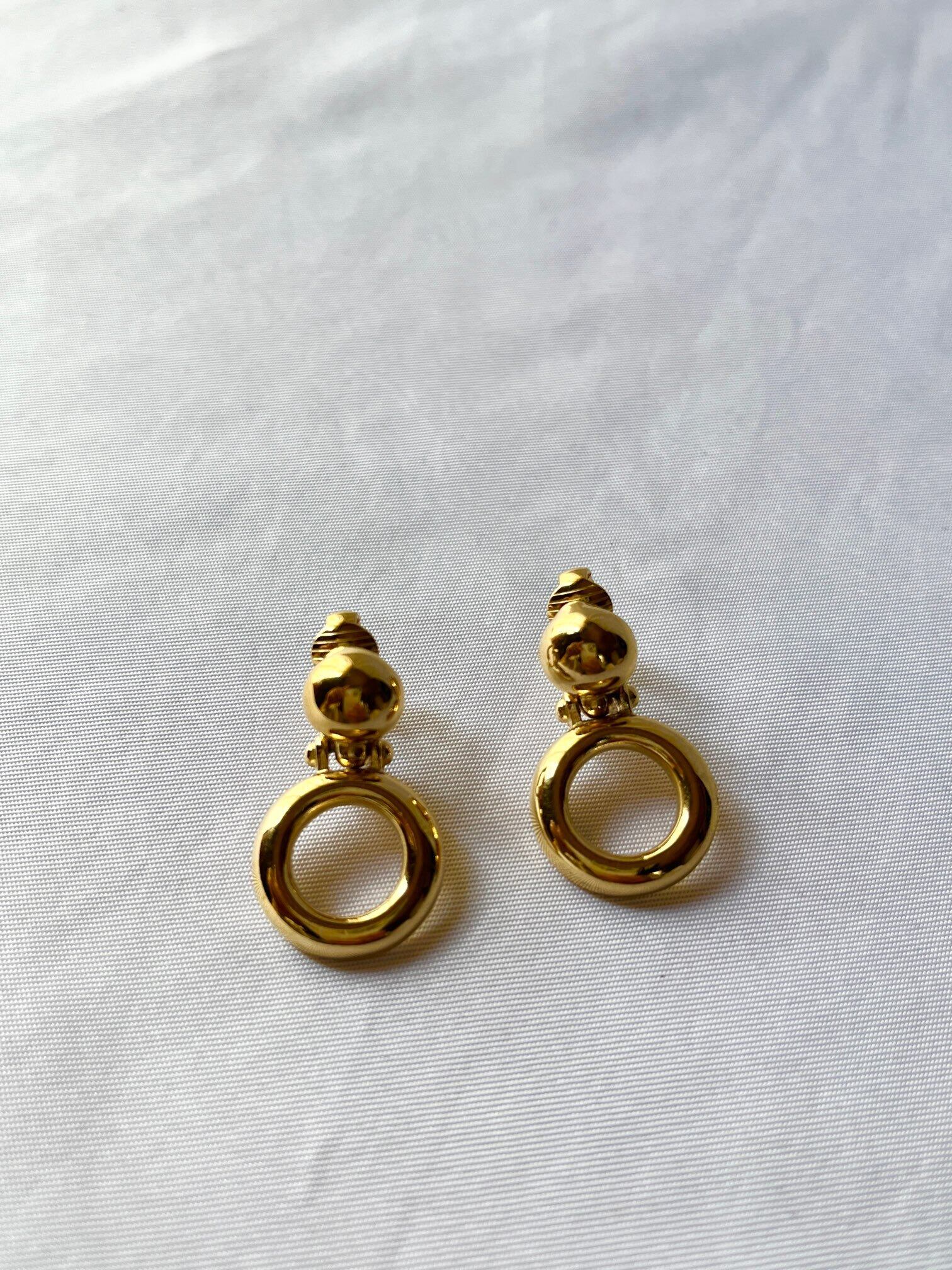 ぶら下がるフープがほのかに揺れるGivenchy vintage イヤリング。上部のラウンドモチーフがつややかで気品のある輝きが魅力的な一品です。