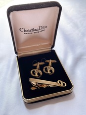 CDのゴールドロゴが華やかなDiorカフス&タイピンセット。80’s vintage