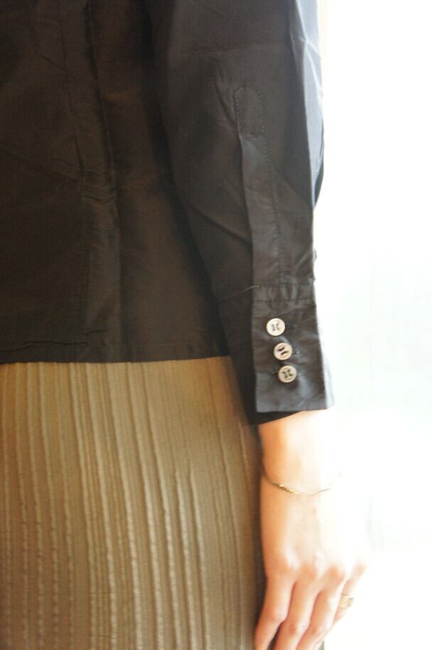 体に沿うウエストに絞りの効いたキレイめなシルエットで、上品さが魅力の一枚です。