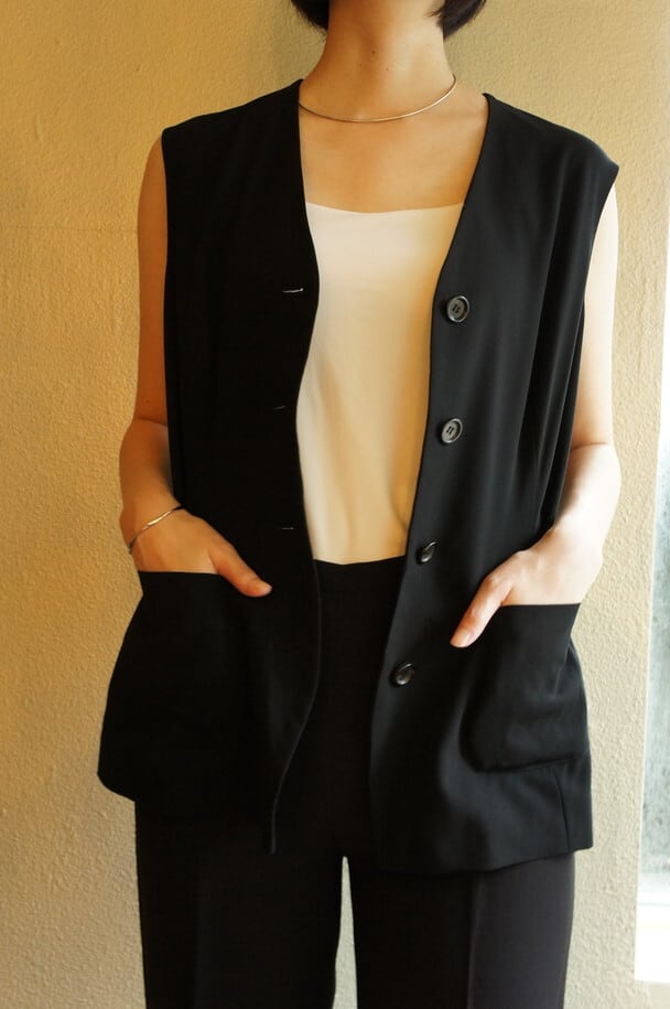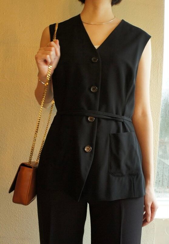 Vネックのシルエットが美しいJIL SANDERの Vintageベスト。ウエストのベルトがキュッとしぼれて、女性らしい雰囲気。ダブルポケットが抜け感もあり絶妙なバランスが魅力的です。