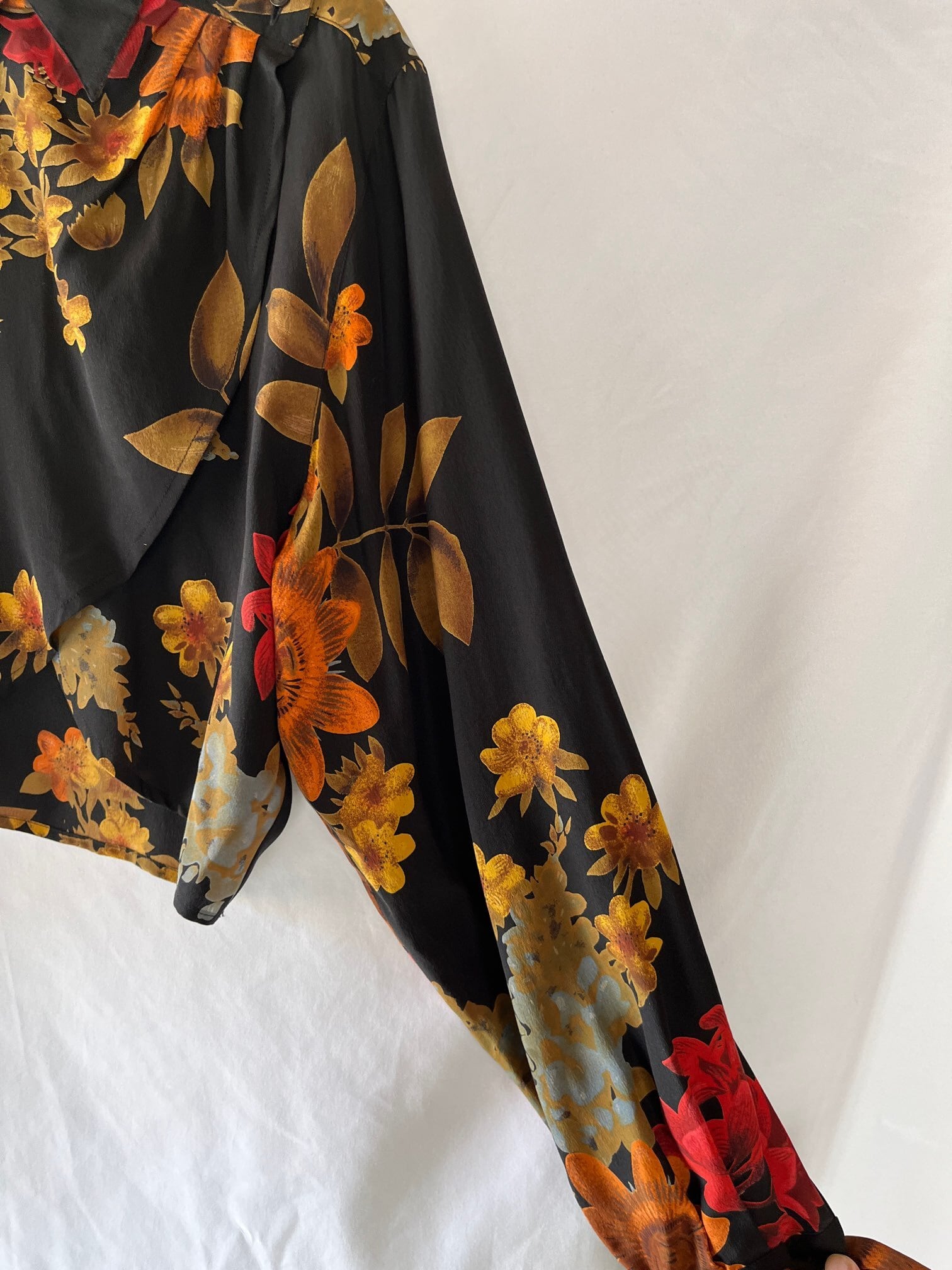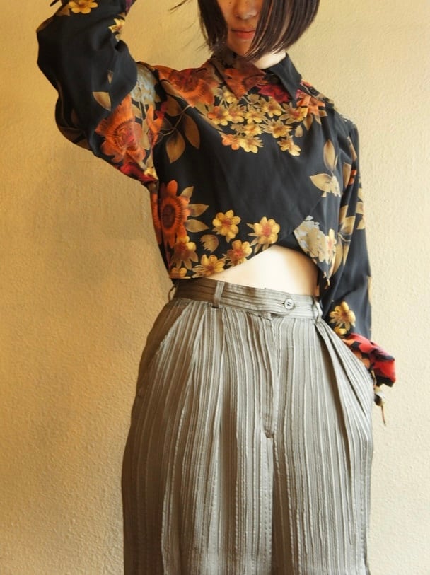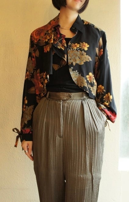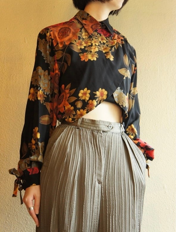 ブラックベースに色とりどりの花柄が芸術的なMax Maraのシルクブラウス