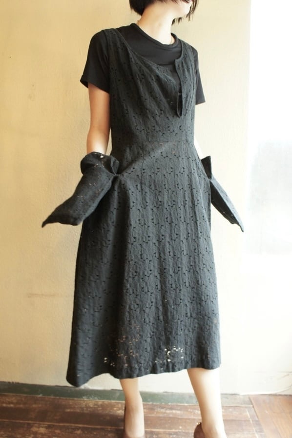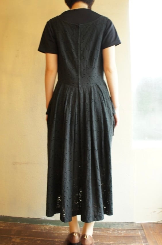 スカート部分は、透け感のあるレース素材なので、重ね着も楽しめる一枚です