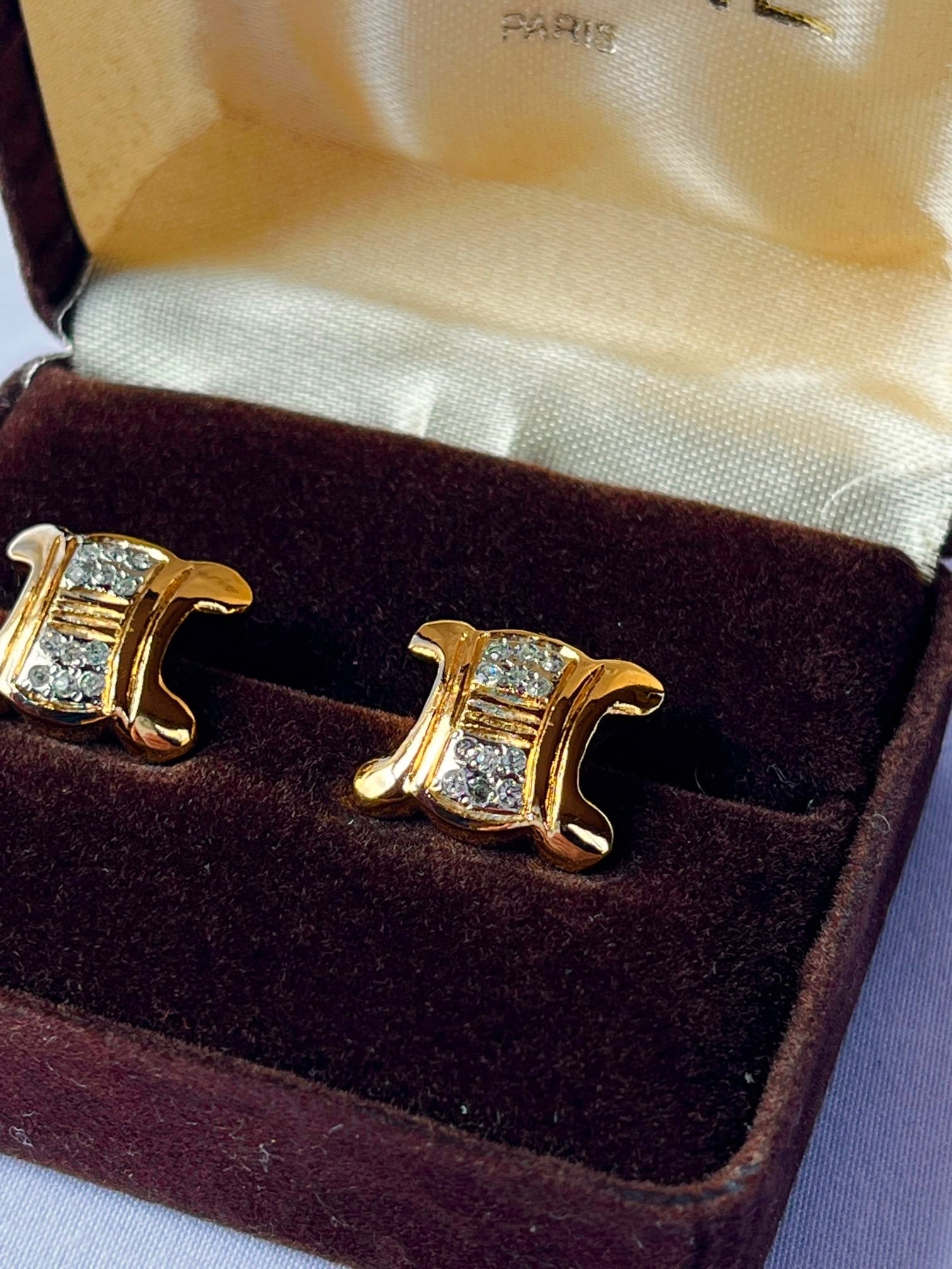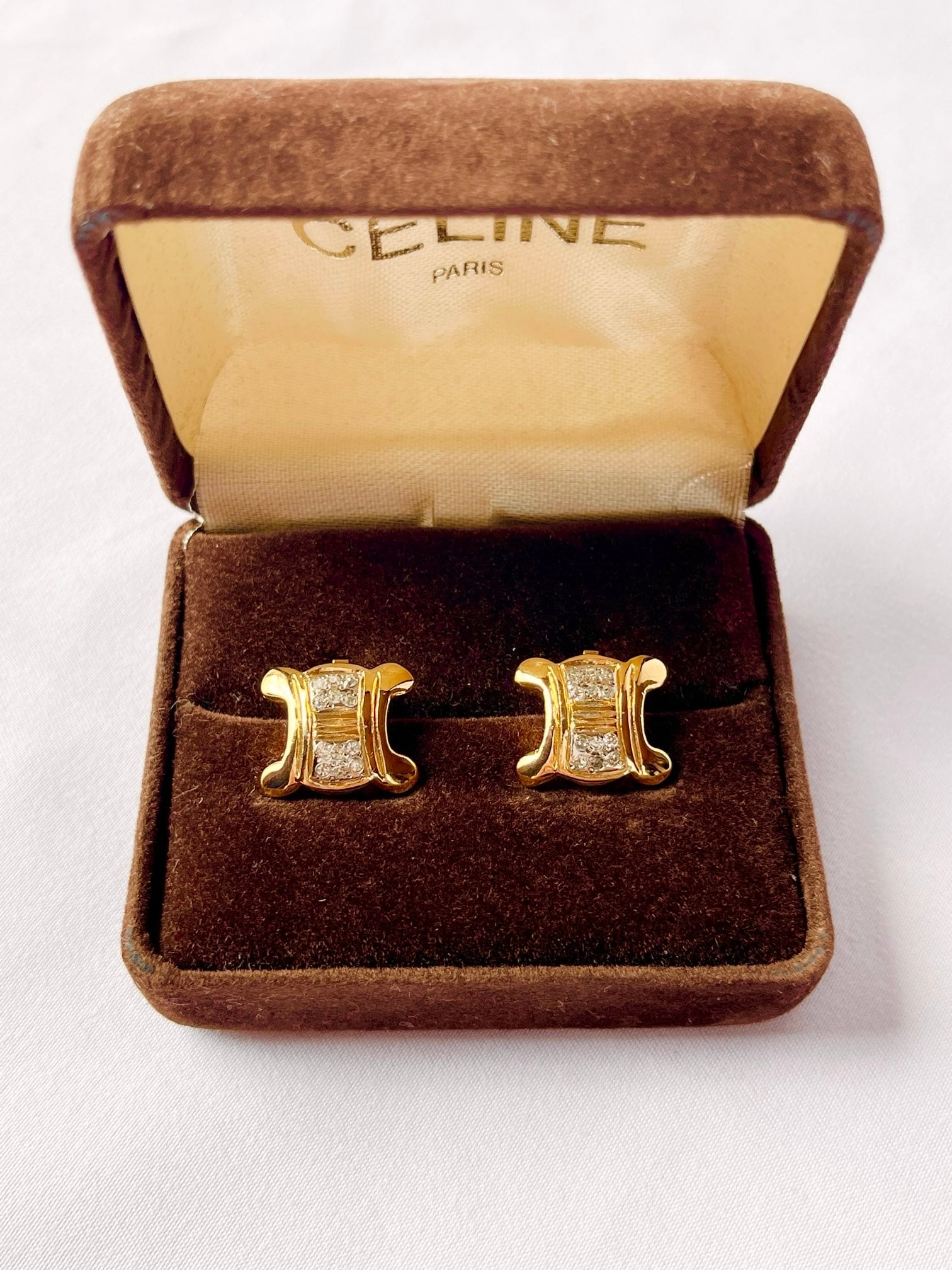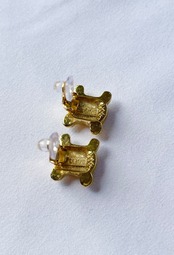 CELINE “Macadam Logo Rhinestone”Gold EarClip with Box