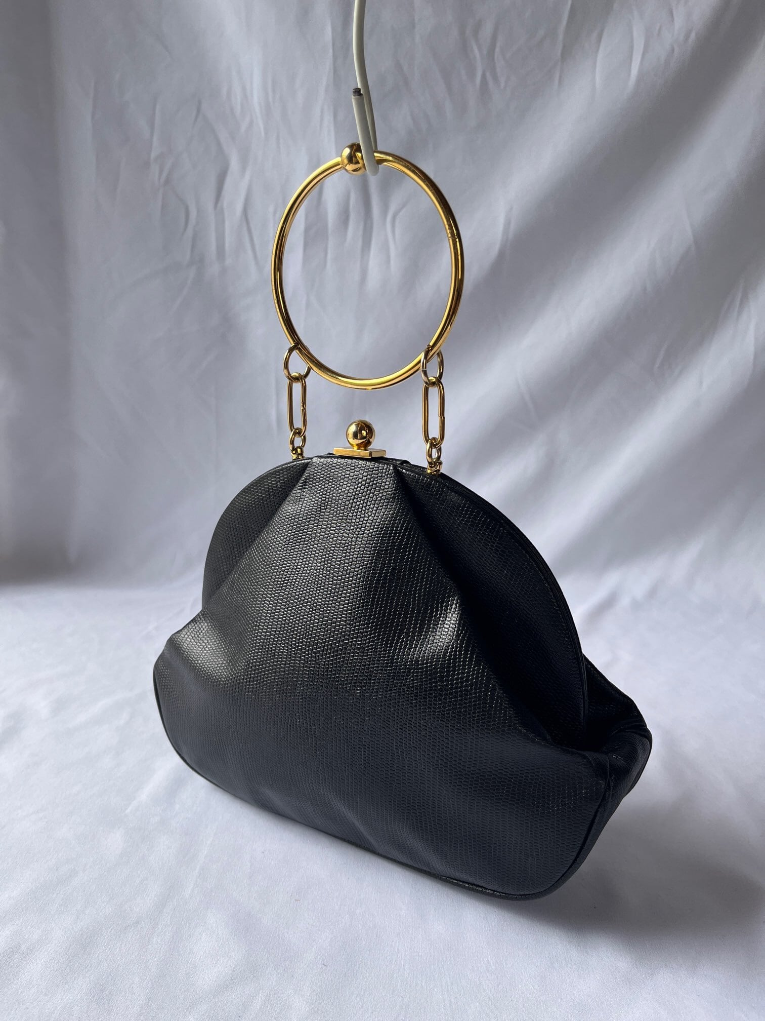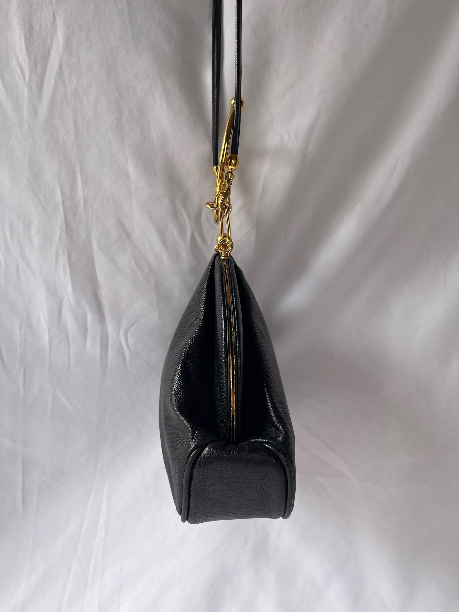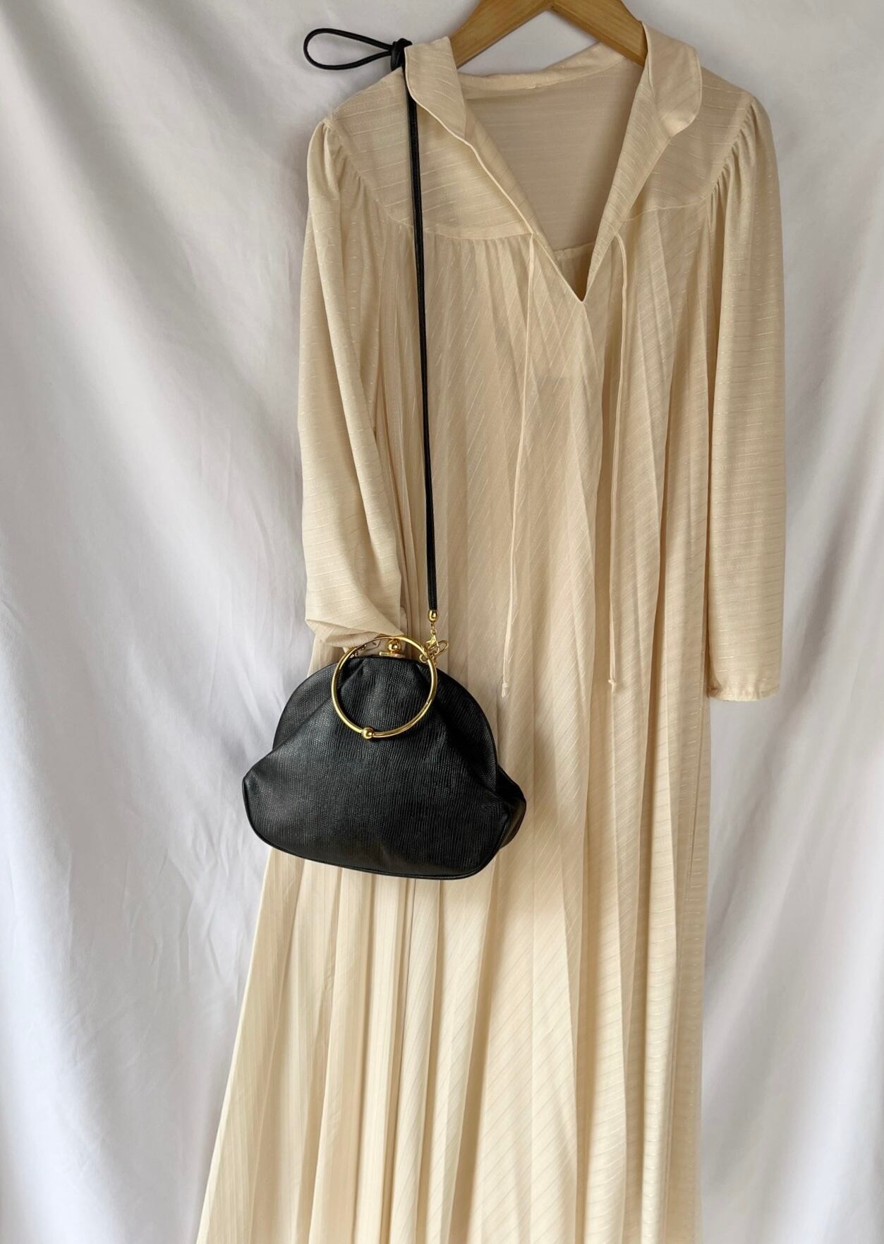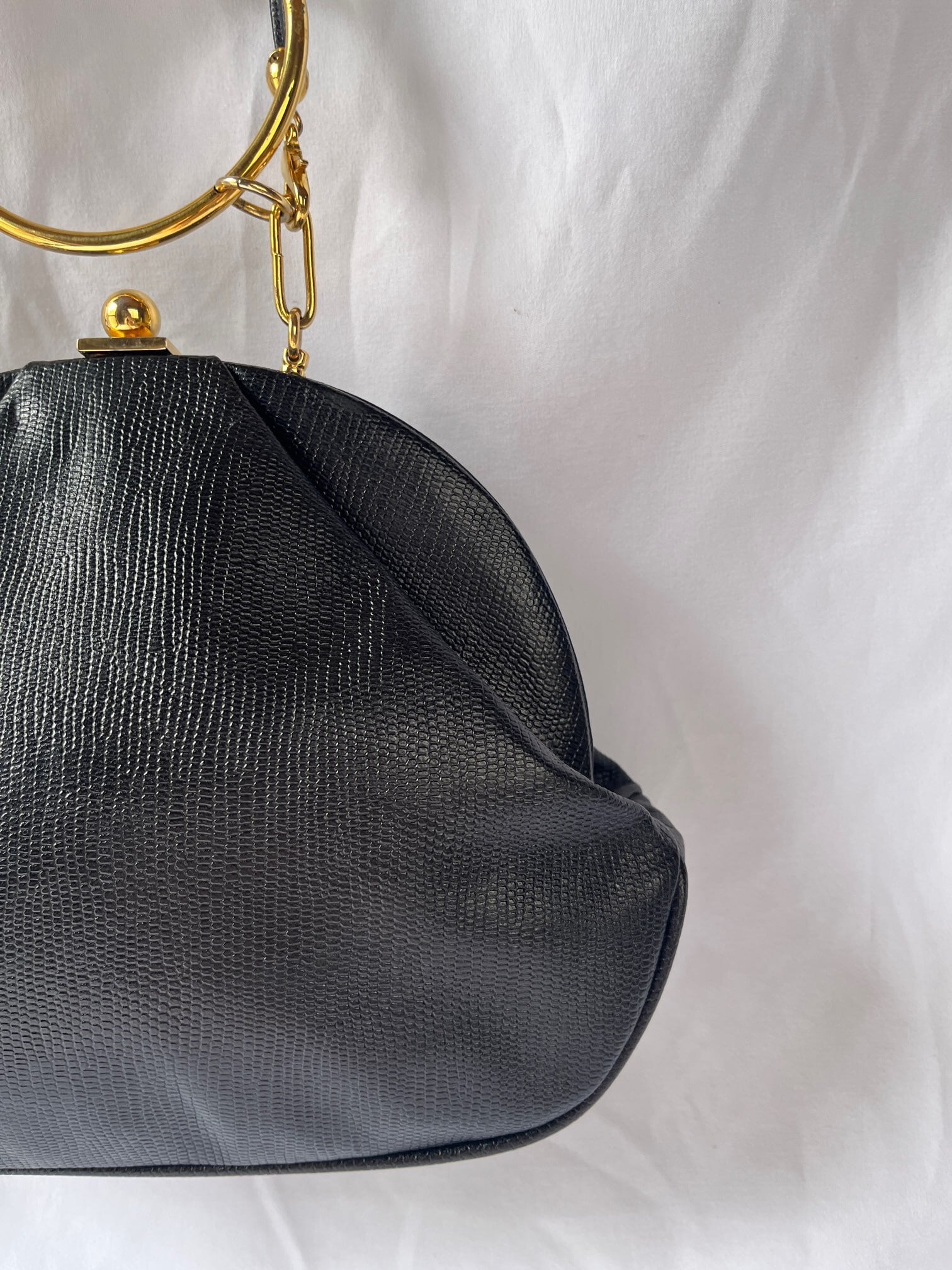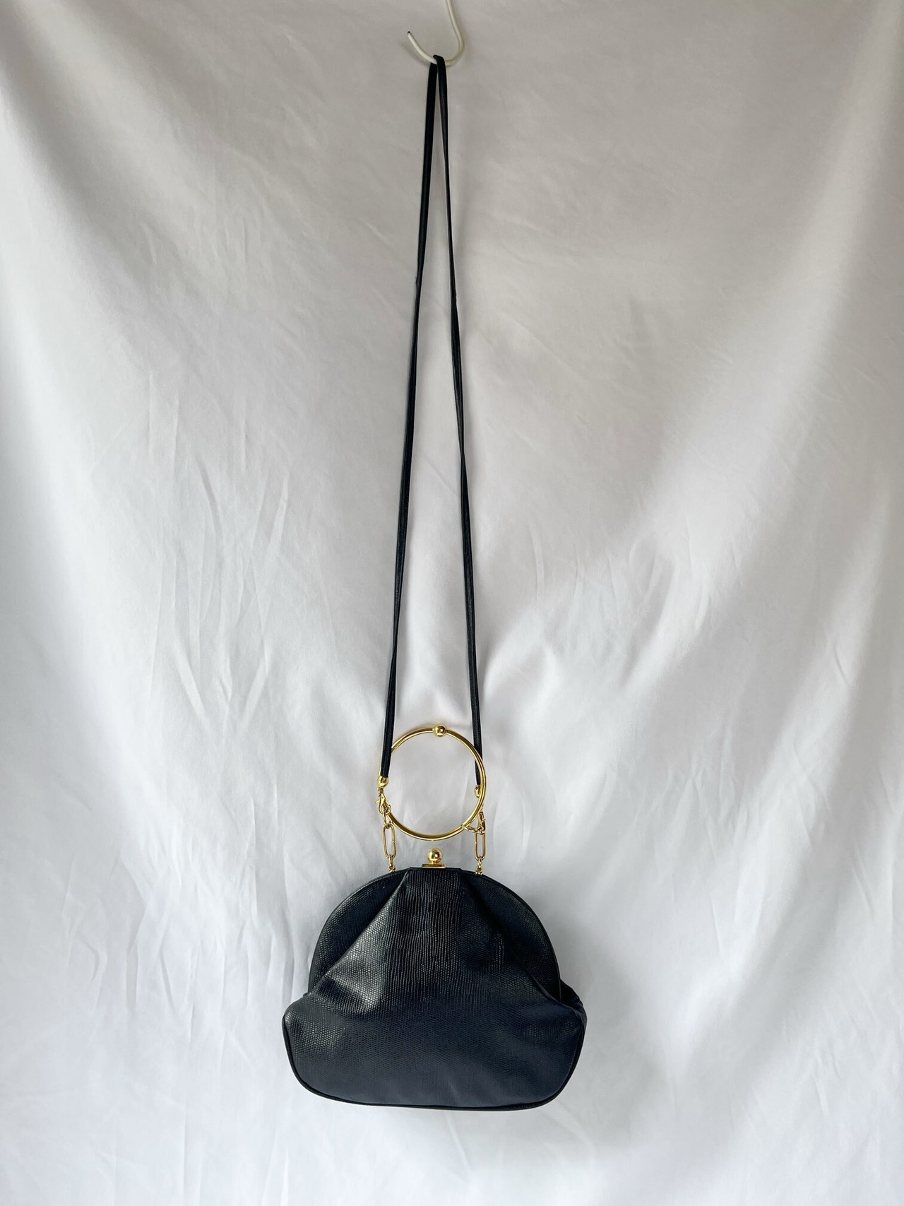 ゴールドのメタルバンドルと細めのレザーストラップで、ハンドとショルダーの2wayで楽しめる逸品。